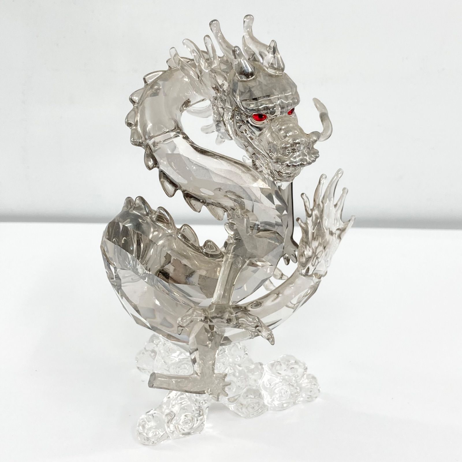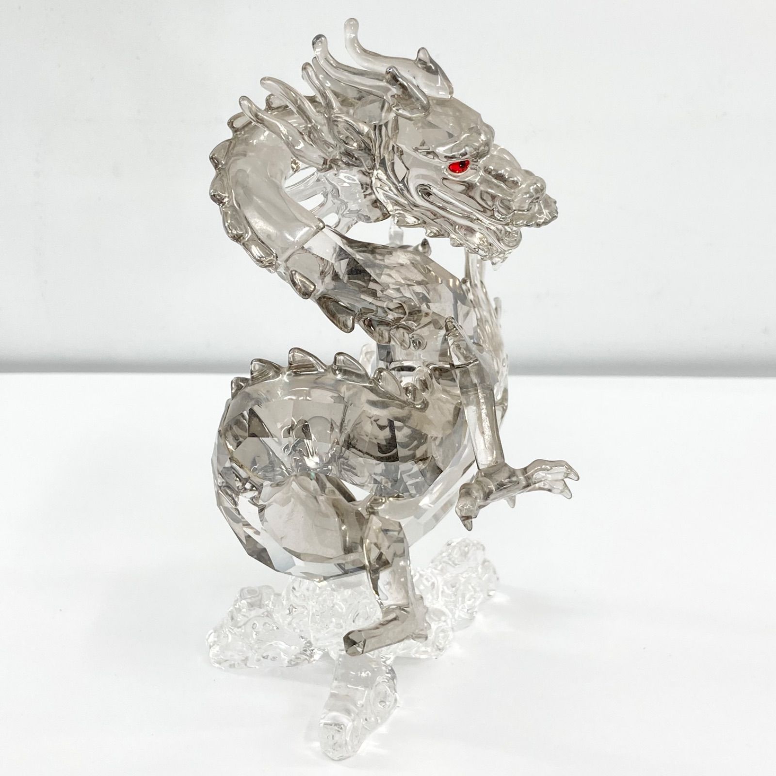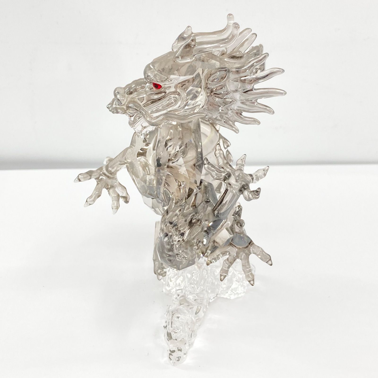 スワロフスキーのクリスタル置物、“SCS 25周年(Crystal Society 25th Anniversary)”モデルの龍(ドラゴン)です。透明クリスタルのボディに赤い目がアクセントの、コレクターにも人気の高い限定モデルです。