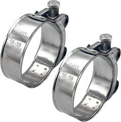 スリップオンマフラーの取り付けや、エキゾーストパイプの補修に最適な、汎用のマフラーバンドクランプ2個セットです。錆に非常に強いステンレス鋼を使用していますので、雨や融雪剤にさらされる厳しい環境下でも、美しい状態を長く保ちます。幅の広いバンドが、接合部分を強力に締め付け、不快な排気漏れをシャットアウトします。