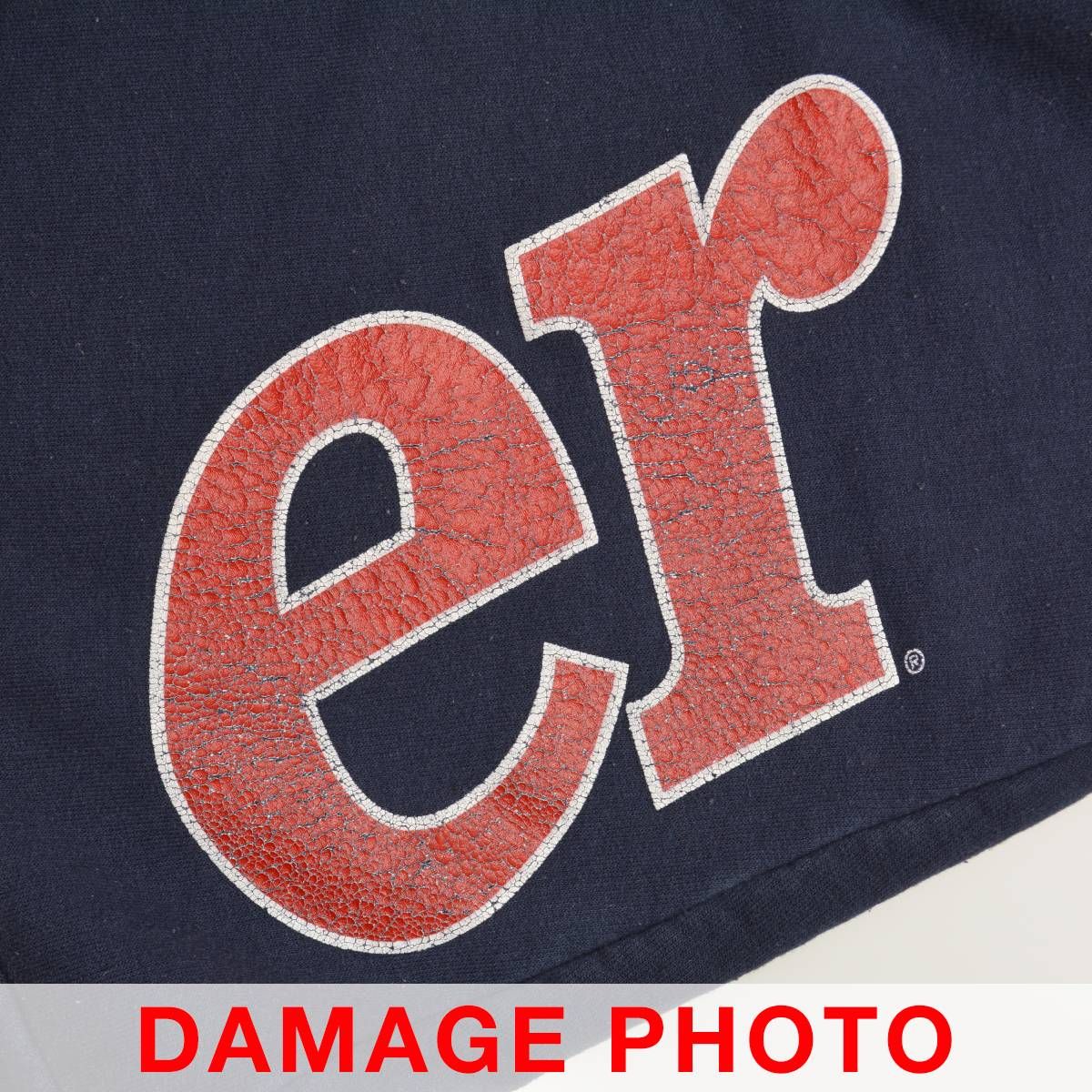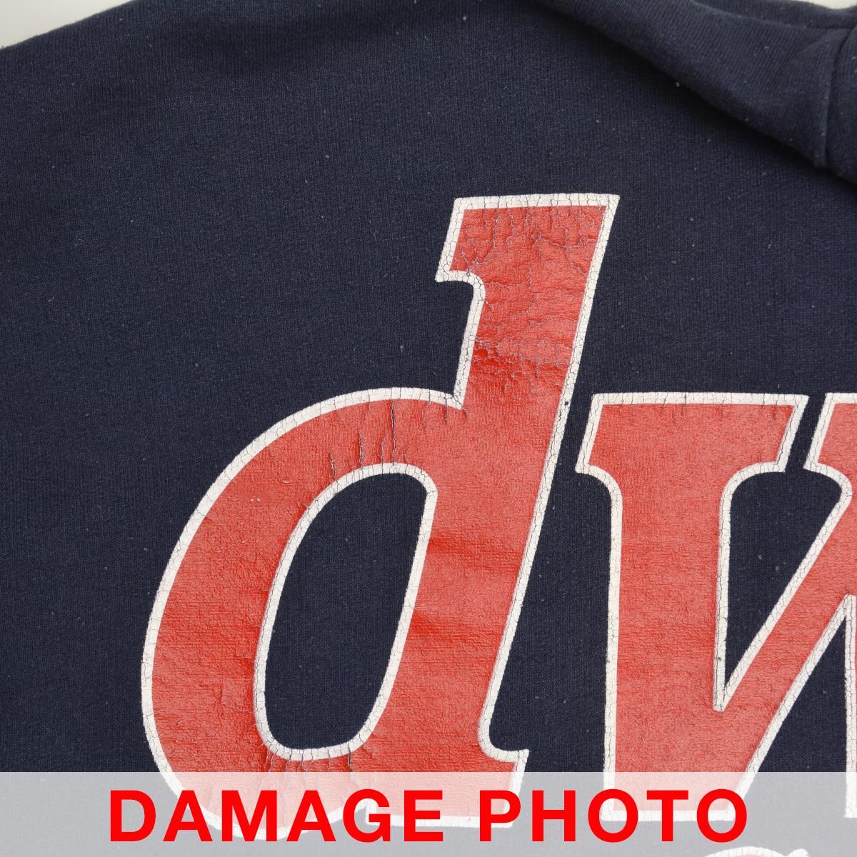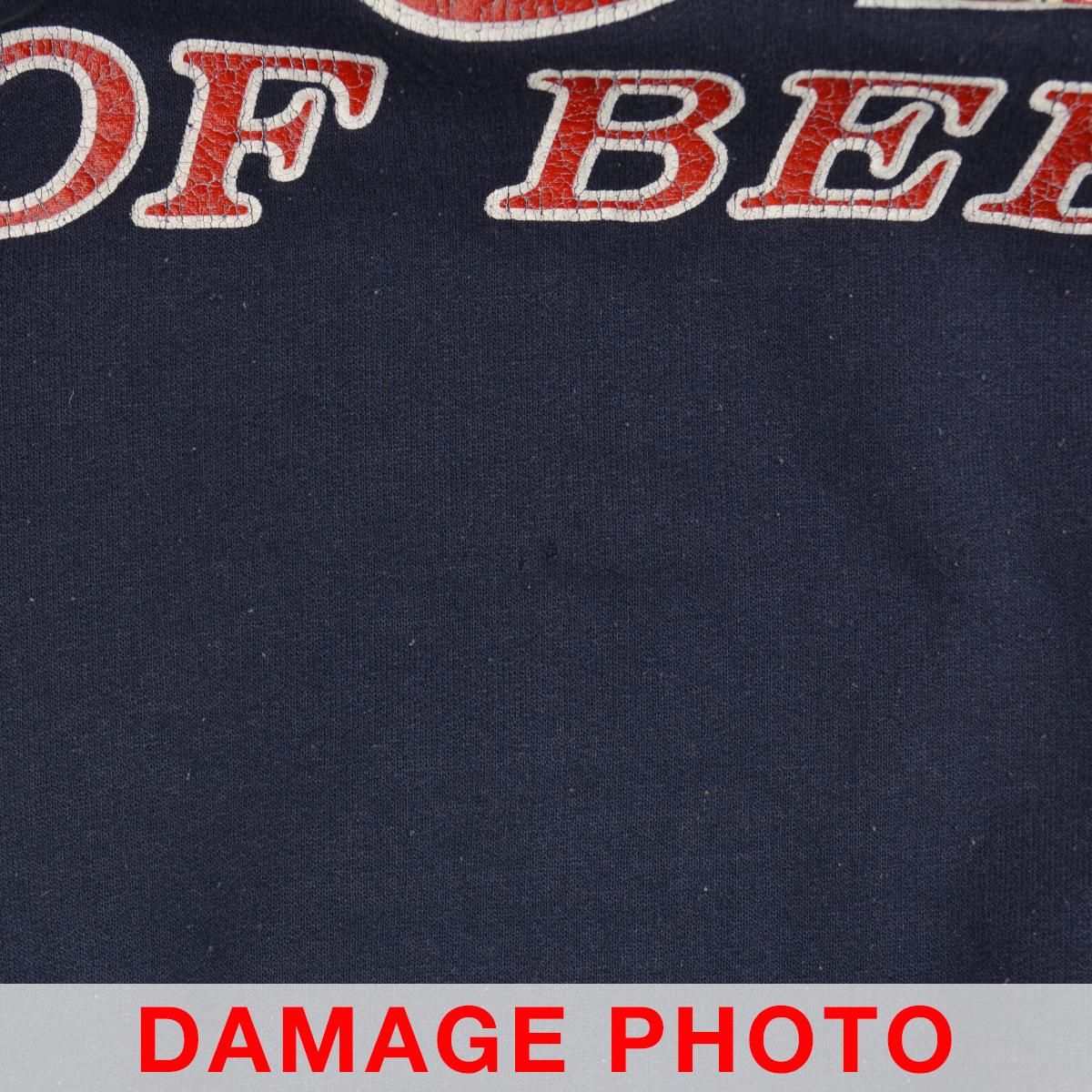 コンディション:USED品となりますので、使用感があり、毛羽立ち・ネック・フロントネック内側に汚れ、プリントにひび割れ、フロント下部に変色が見られます。