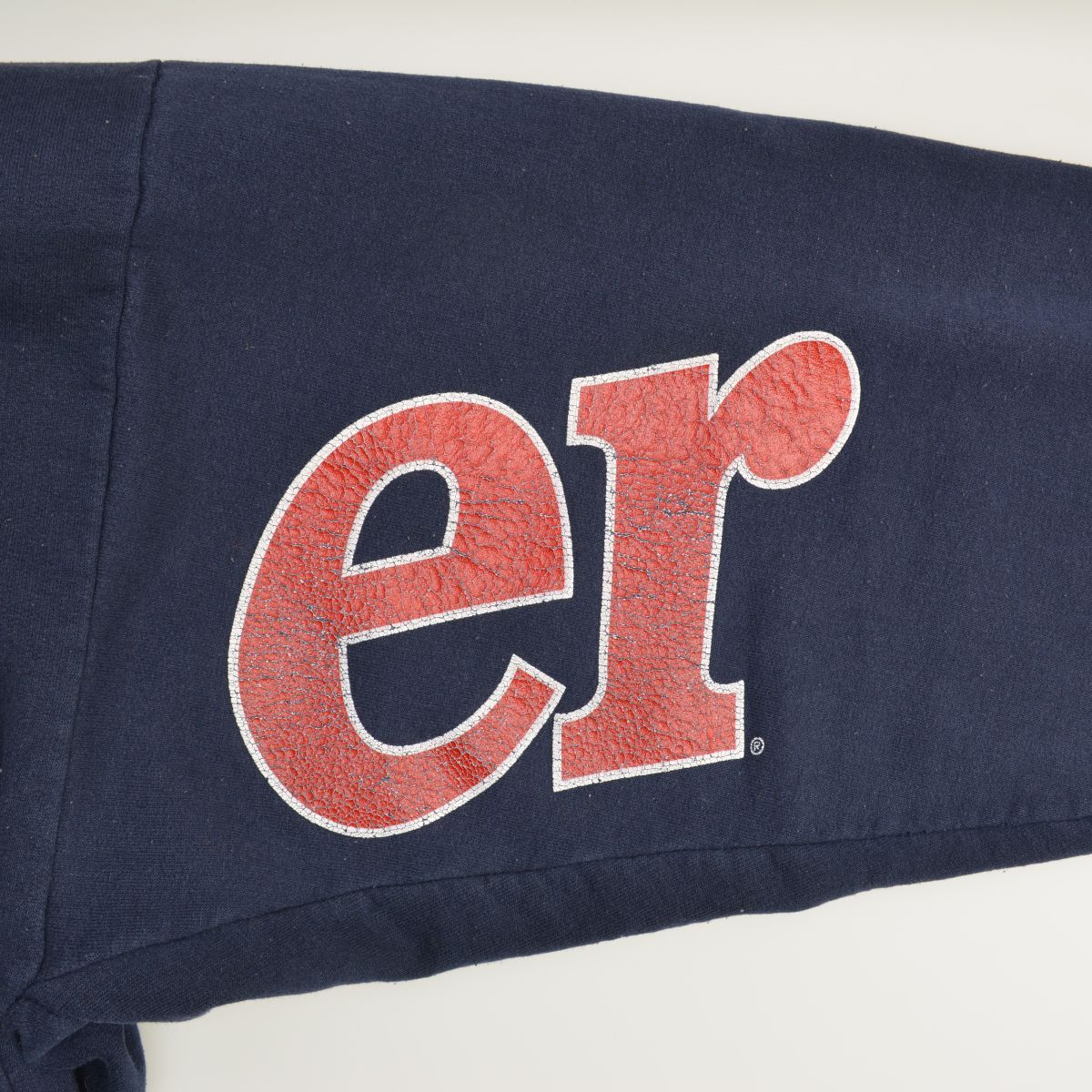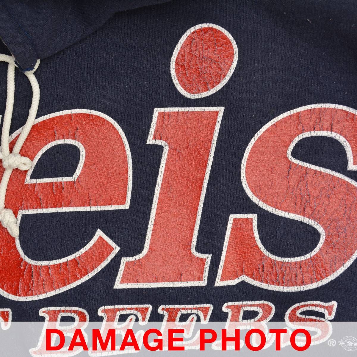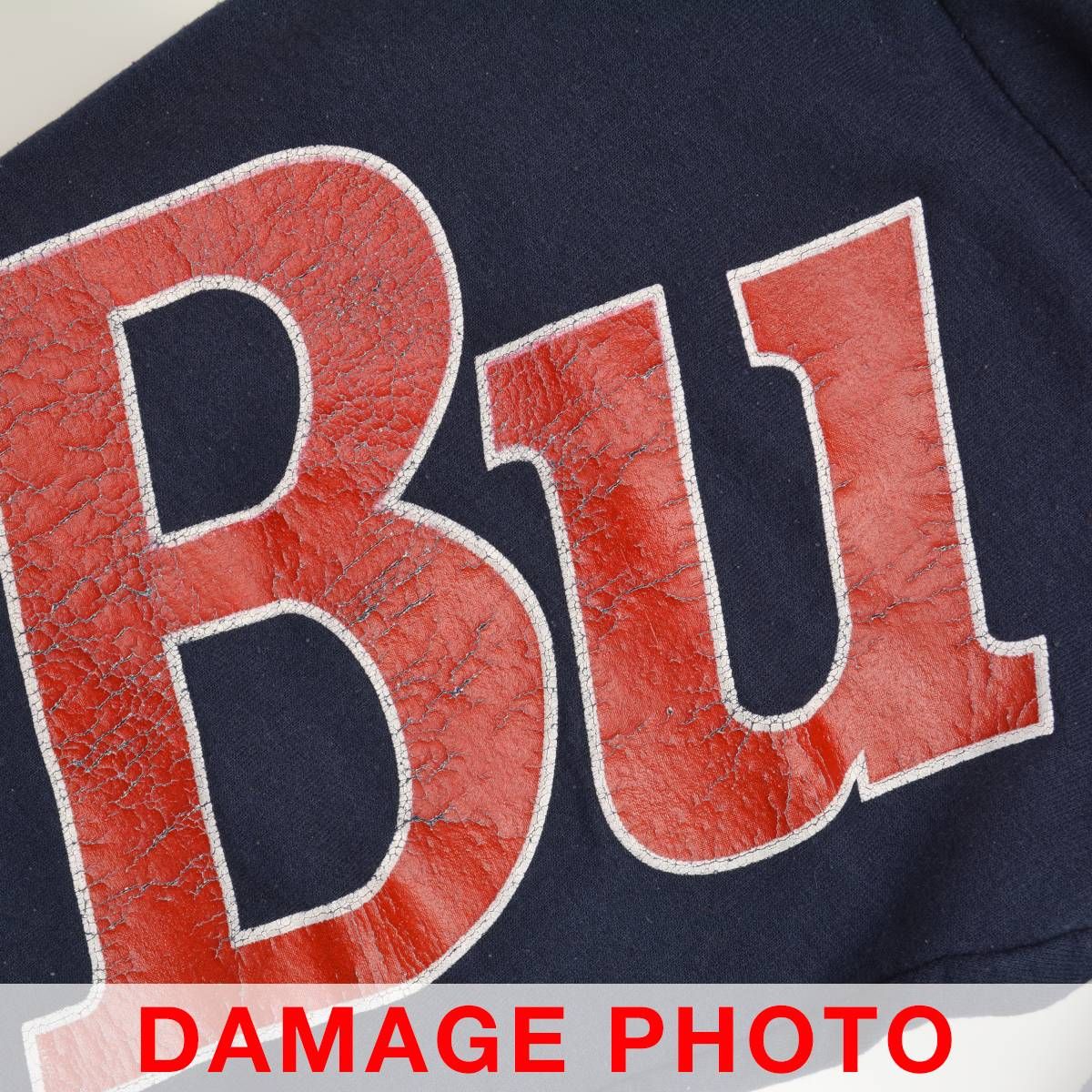 コンディション:USED品となりますので、使用感があり、毛羽立ち・ネック・フロントネック内側に汚れ、プリントにひび割れ、フロント下部に変色が見られます。