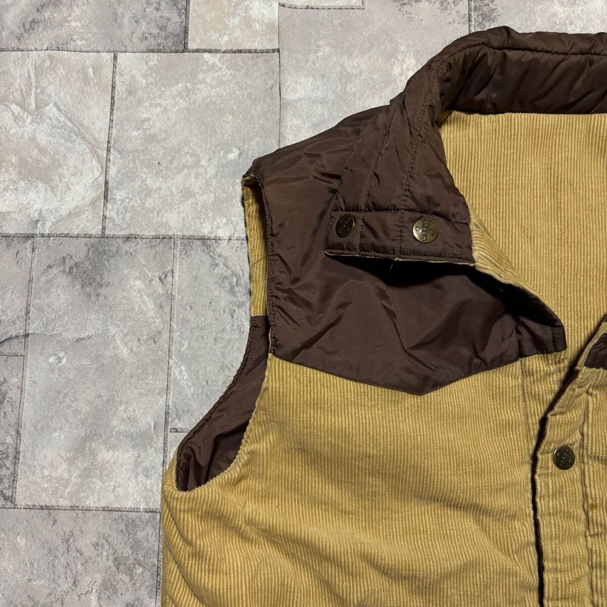 weeds US古着 ヴィンテージ リバーシブルベスト ナイロン コーデュロイ 中綿 ベージュ ブラウン サイズL相当 玉FS1739