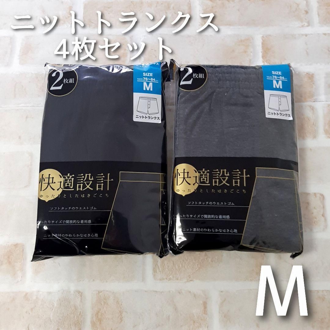 メンズ 無地 ニット トランクス 前開き 4枚 パンツ 下着 M L LL 3L 4L 5L 大きいサイズ