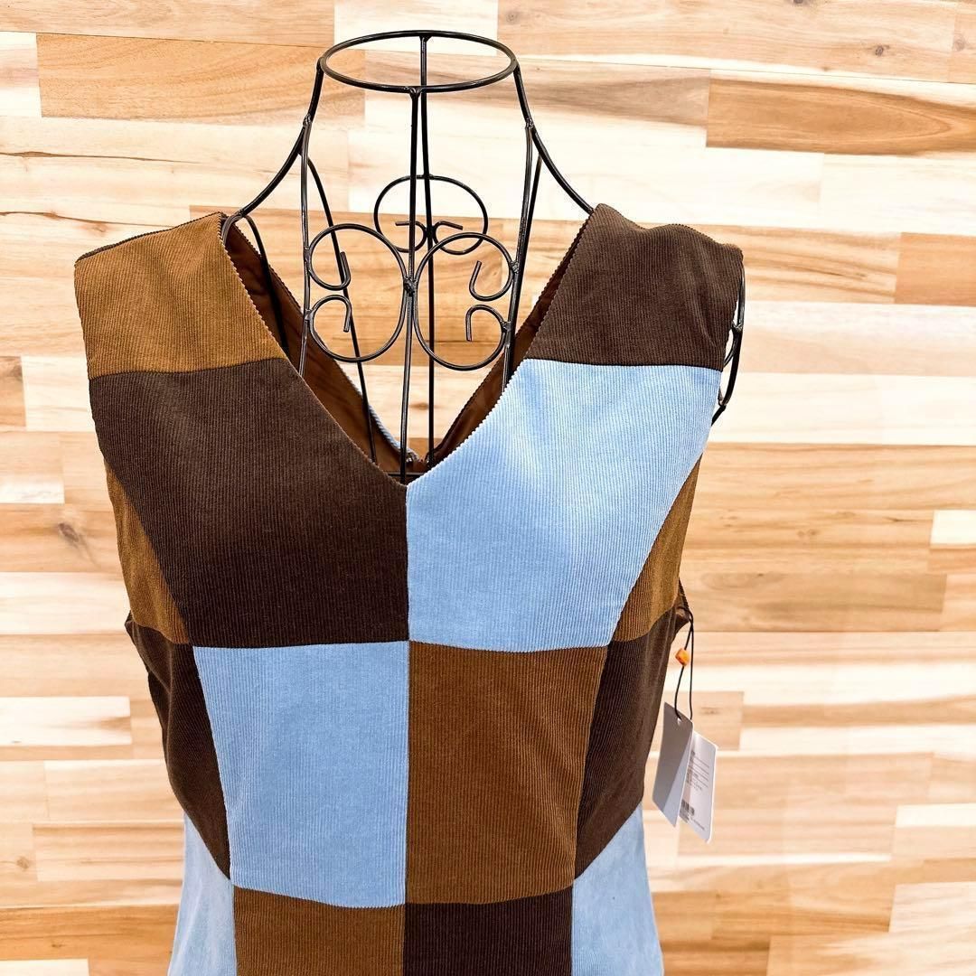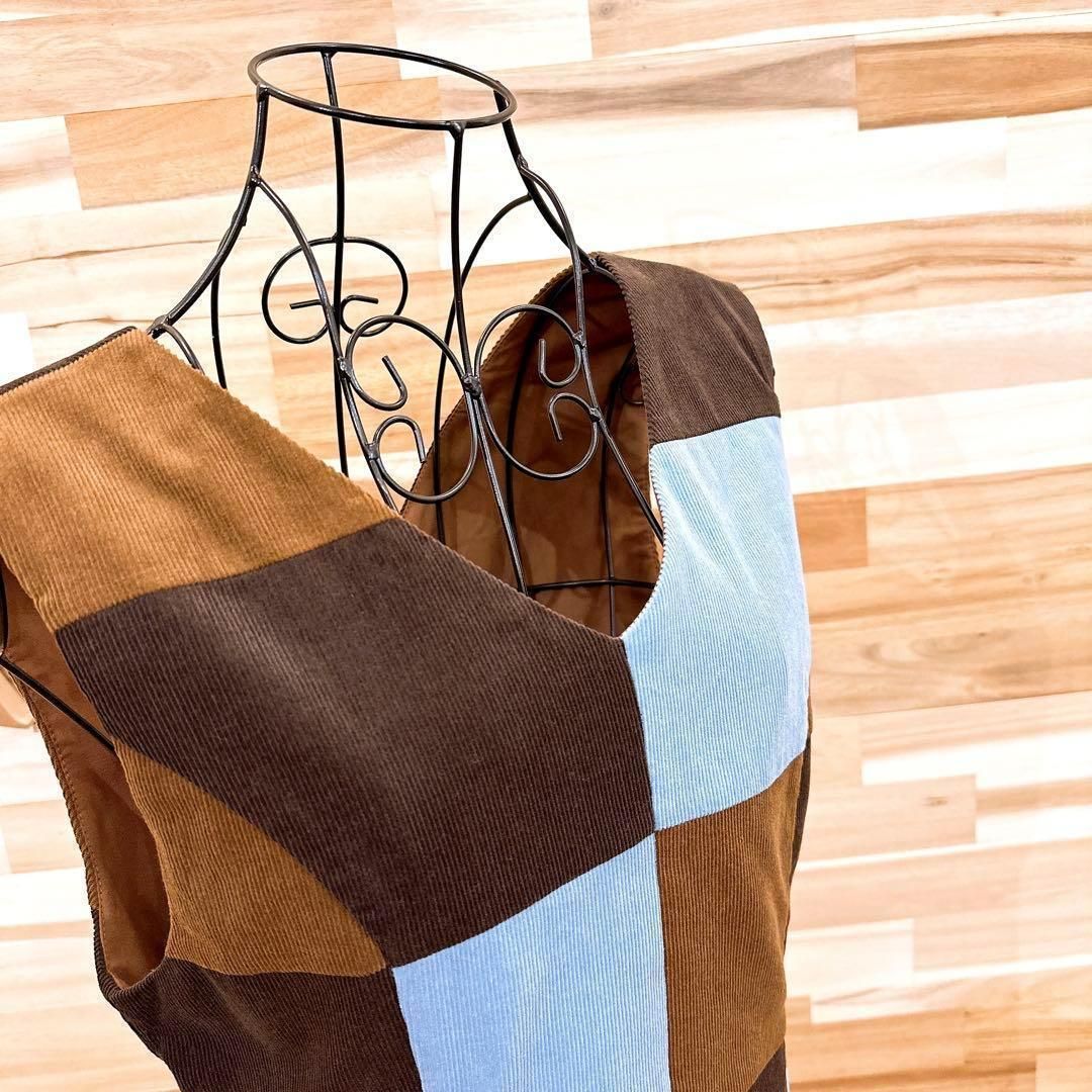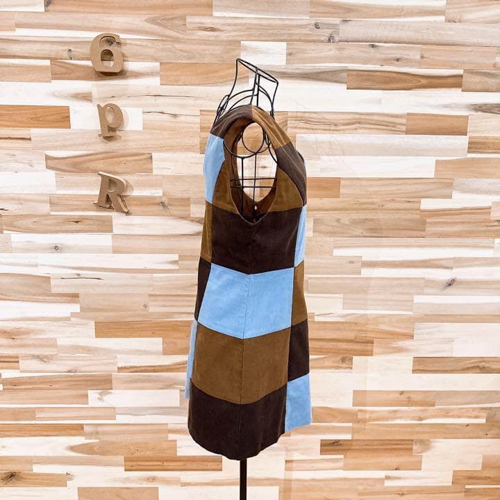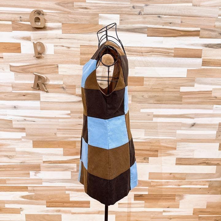 ブラウンとブルーの大胆な配色の切り替えが目を引くデザインで、落ち着きのある色味にリズムを与えるパッチワークでつくられたチェック柄が個性を引き立てる一着。身体に沿うコンパクトなシルエットながら、やや伸びのある風合いが締め付けず、動きに心地よくフィットする着用感も魅力的なSLYのワンピースです。