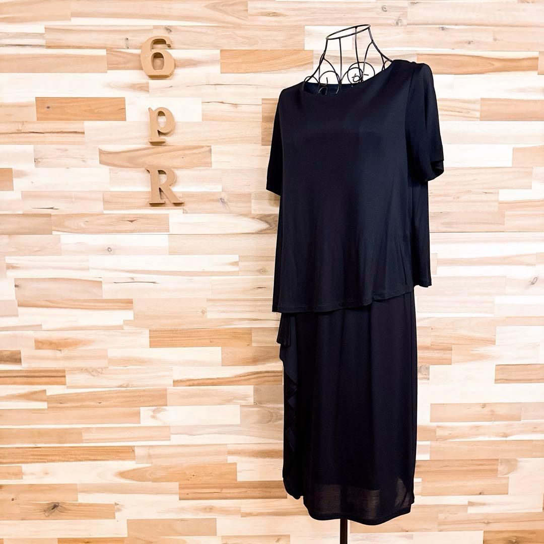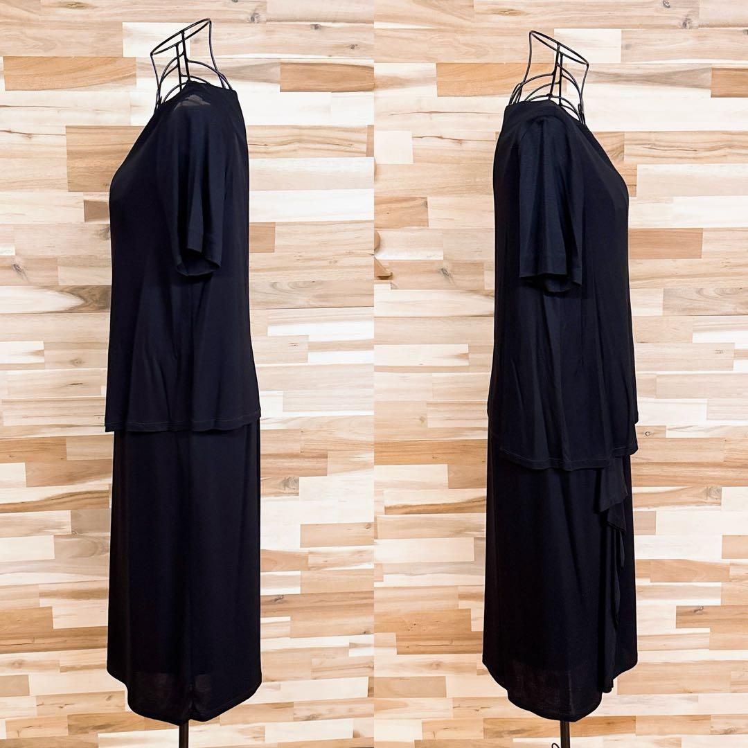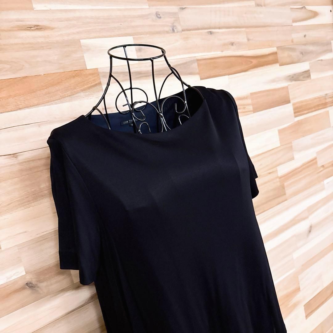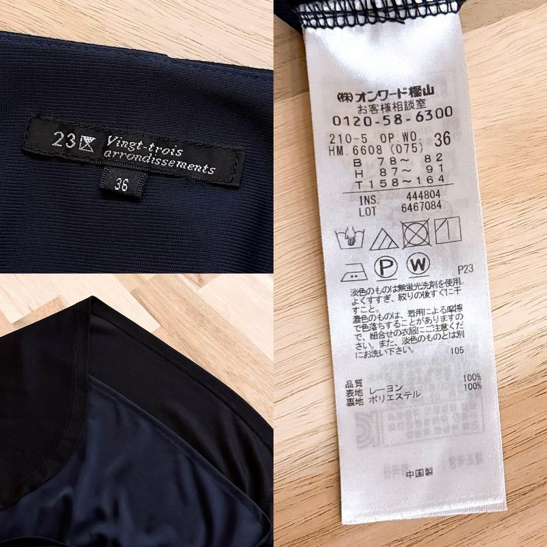 やや薄手のしっとり落ち感のある滑らかな素材が、体のラインを優しくなぞるシルエット。深みのあるネイビーが醸す引き締め感と、軽やかなレイヤード風のドッキングデザインが好バランス。片側に寄せた緩やかなフリルが、控えめながらも印象的なアクセントに。パンプスやミニバッグを合わせて、落ち着きと女性らしさを引き立ててくれる23区のワンピースです。※LGスタイラーにて除菌リフレッシュ・スチームクリーニング済みです。