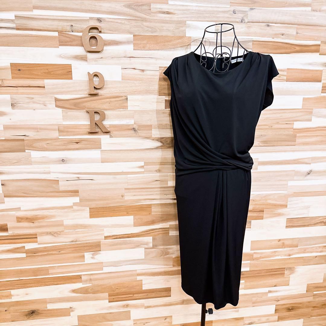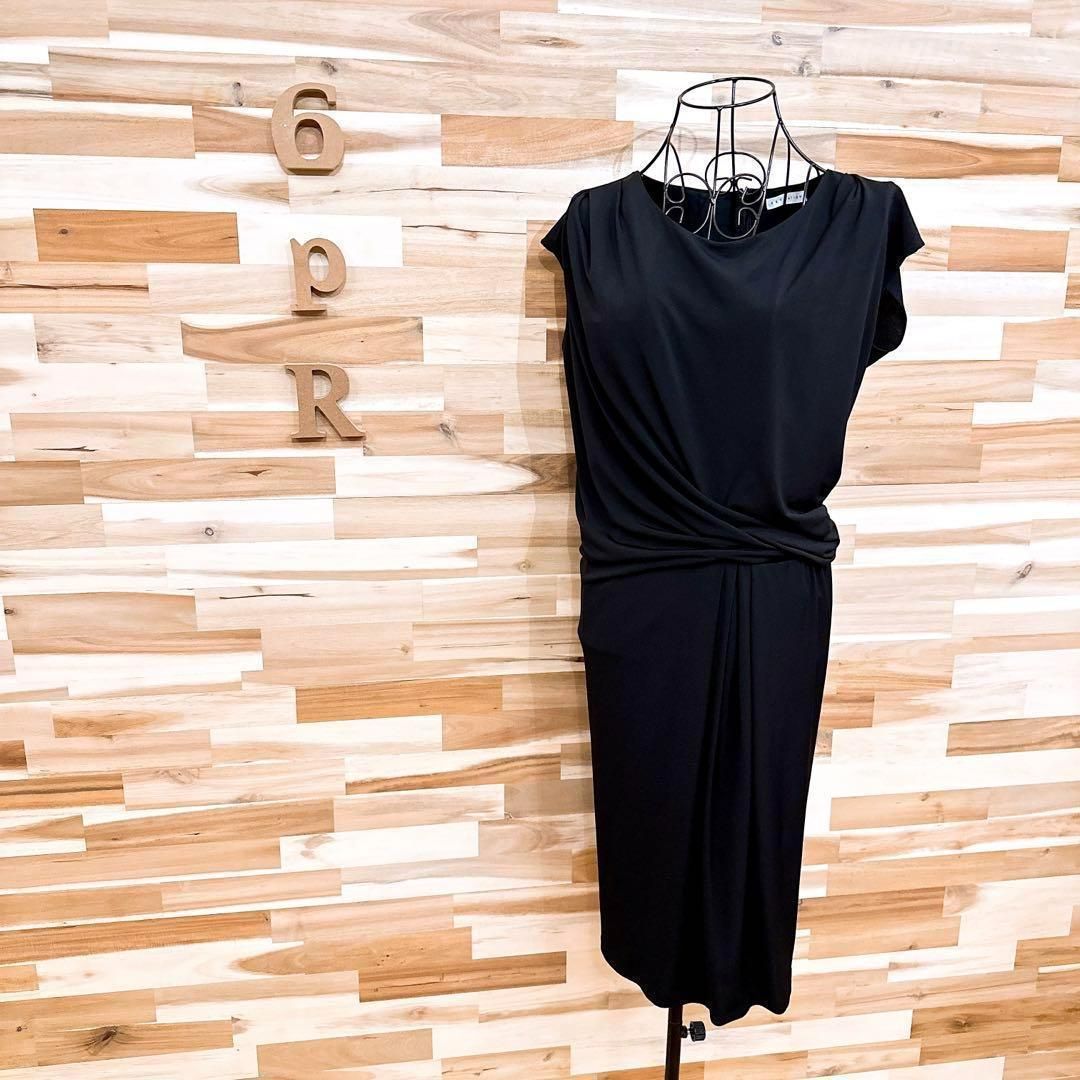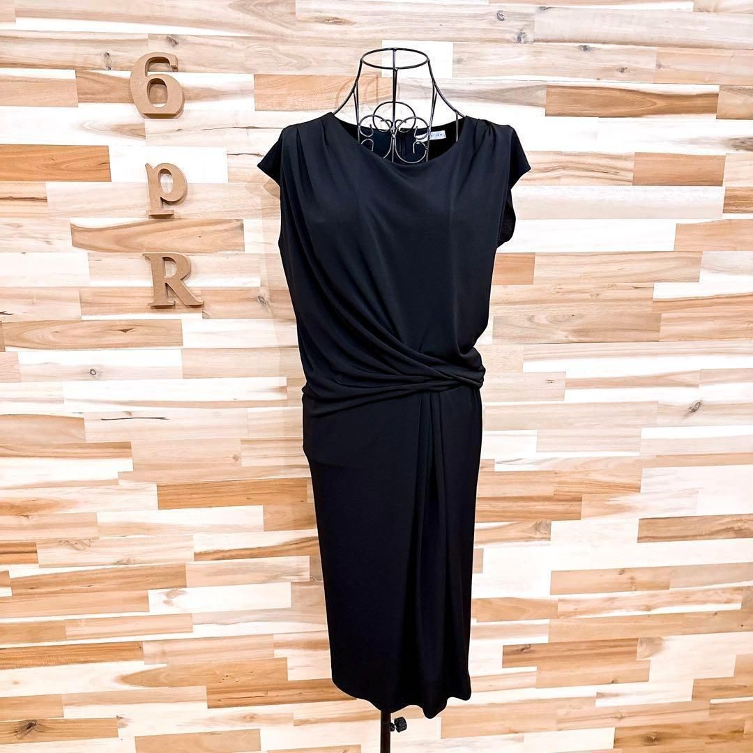 深みのあるブラックが凛とした印象を引き立て、滑らかに落ちるドレープが女性らしい曲線を美しく際立たせる一着。アシンメトリーに重ねられた布の動きが奥行きを生み、シックでありながら軽やかさを感じさせる洗練されたシルエットが魅力的なESTNATIONのワンピースです。※LGスタイラーにて除菌リフレッシュ・スチームクリーニング済みです。