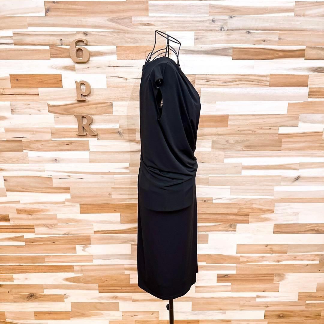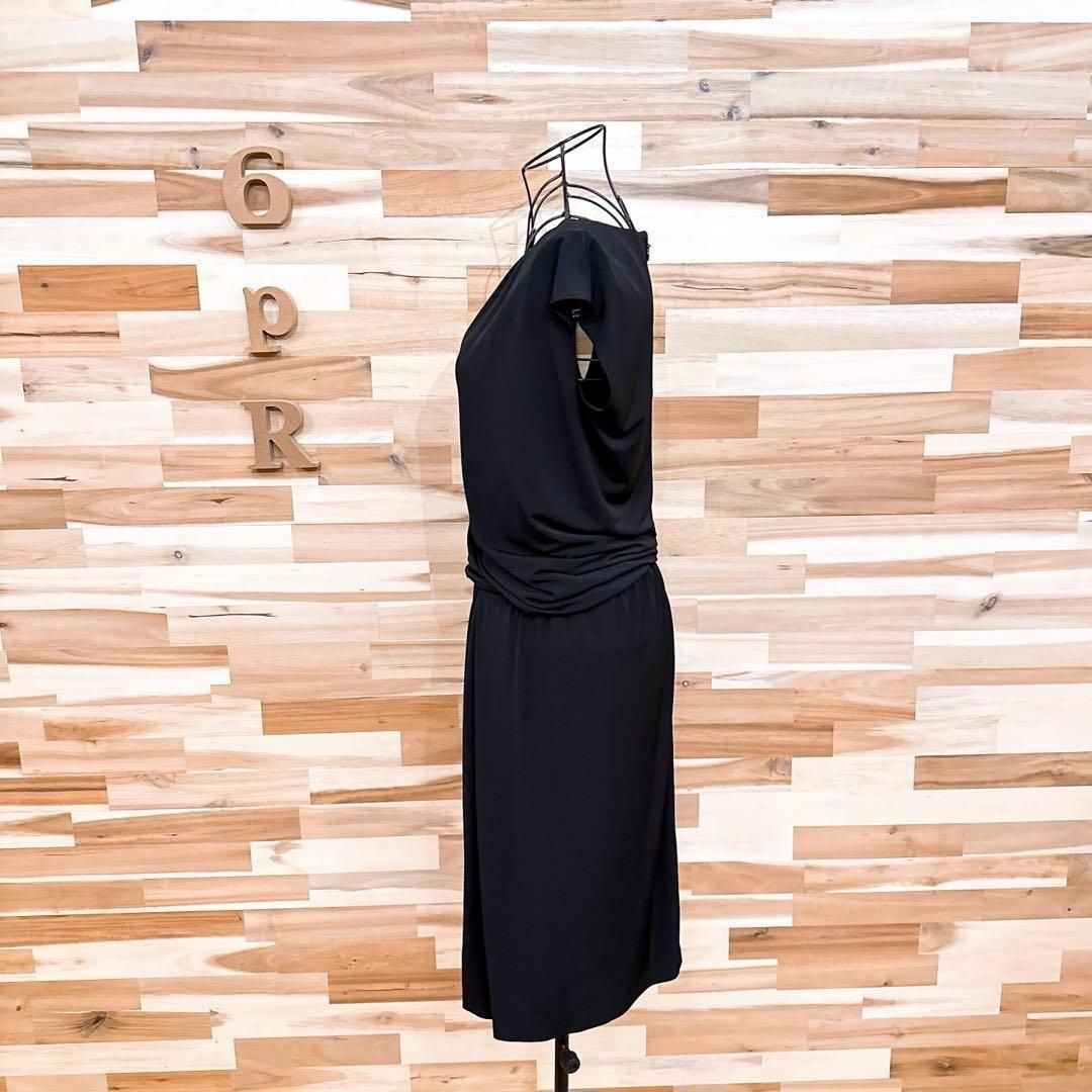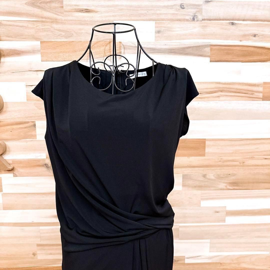 深みのあるブラックが凛とした印象を引き立て、滑らかに落ちるドレープが女性らしい曲線を美しく際立たせる一着。アシンメトリーに重ねられた布の動きが奥行きを生み、シックでありながら軽やかさを感じさせる洗練されたシルエットが魅力的なESTNATIONのワンピースです。※LGスタイラーにて除菌リフレッシュ・スチームクリーニング済みです。