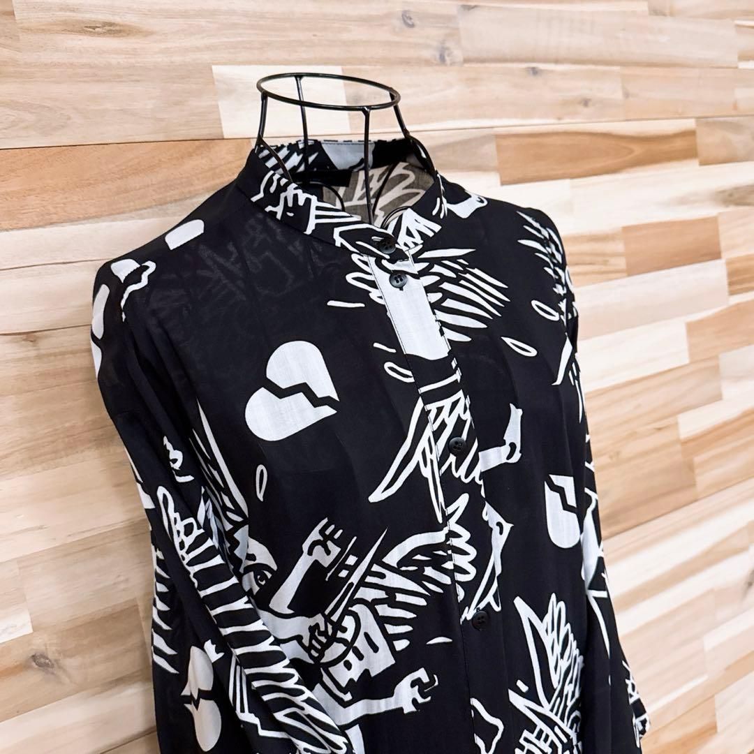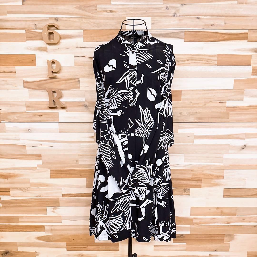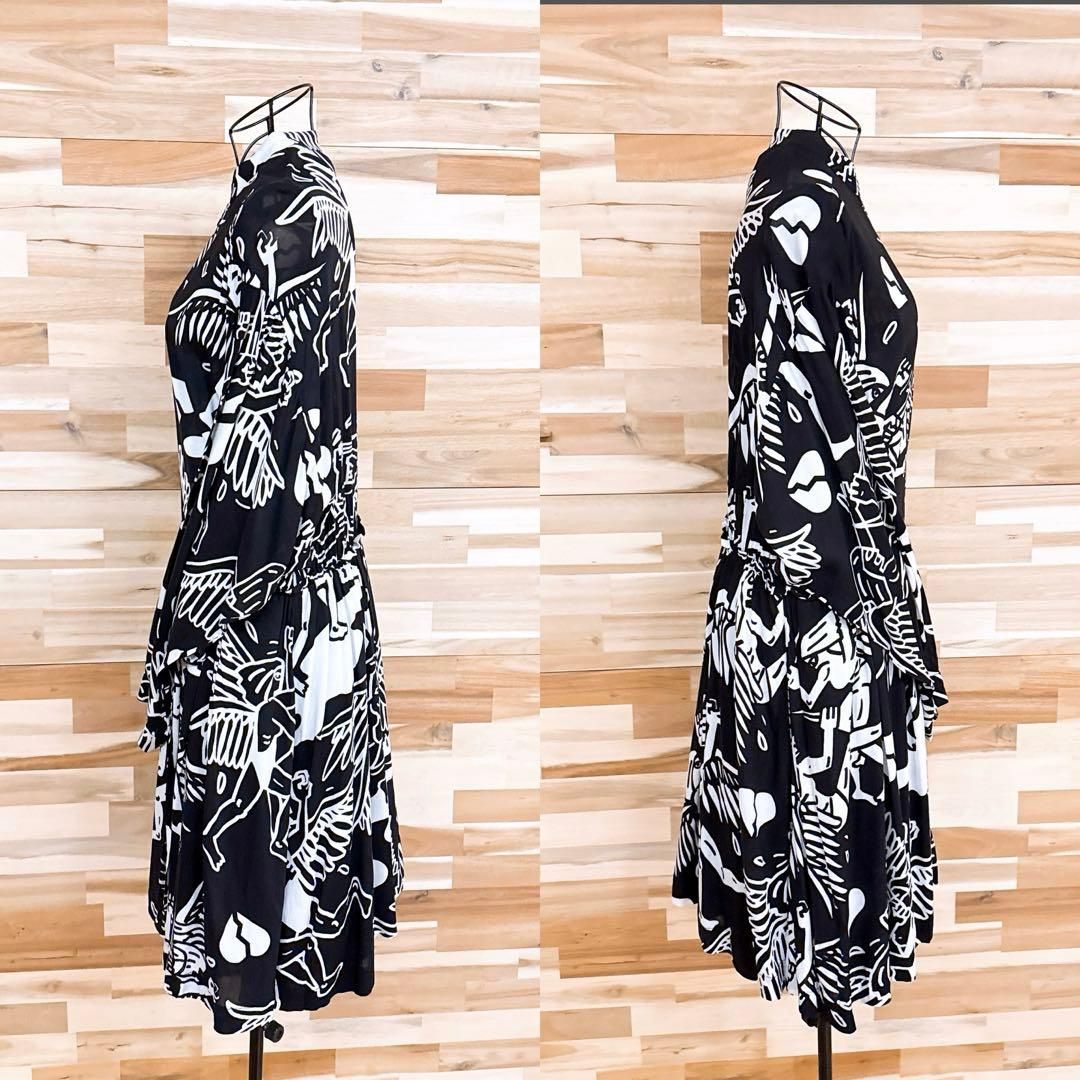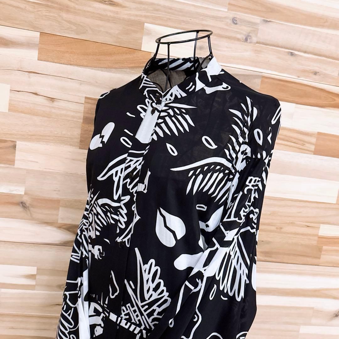 薄手で柔らかく、しっとりとした肌触りのレーヨン素材が、優雅なドレープを生み出すデザイン。ブラック×ホワイトの大胆なアートプリントが、視線を惹きつける存在感を放ち、サイドから後ろにかけて施されたたっぷりのギャザーが、歩くたびに美しい揺れを演出してくれるKAREN WALKERのワンピースです。※LGスタイラーにて除菌リフレッシュ・スチームクリーニング済みです。
