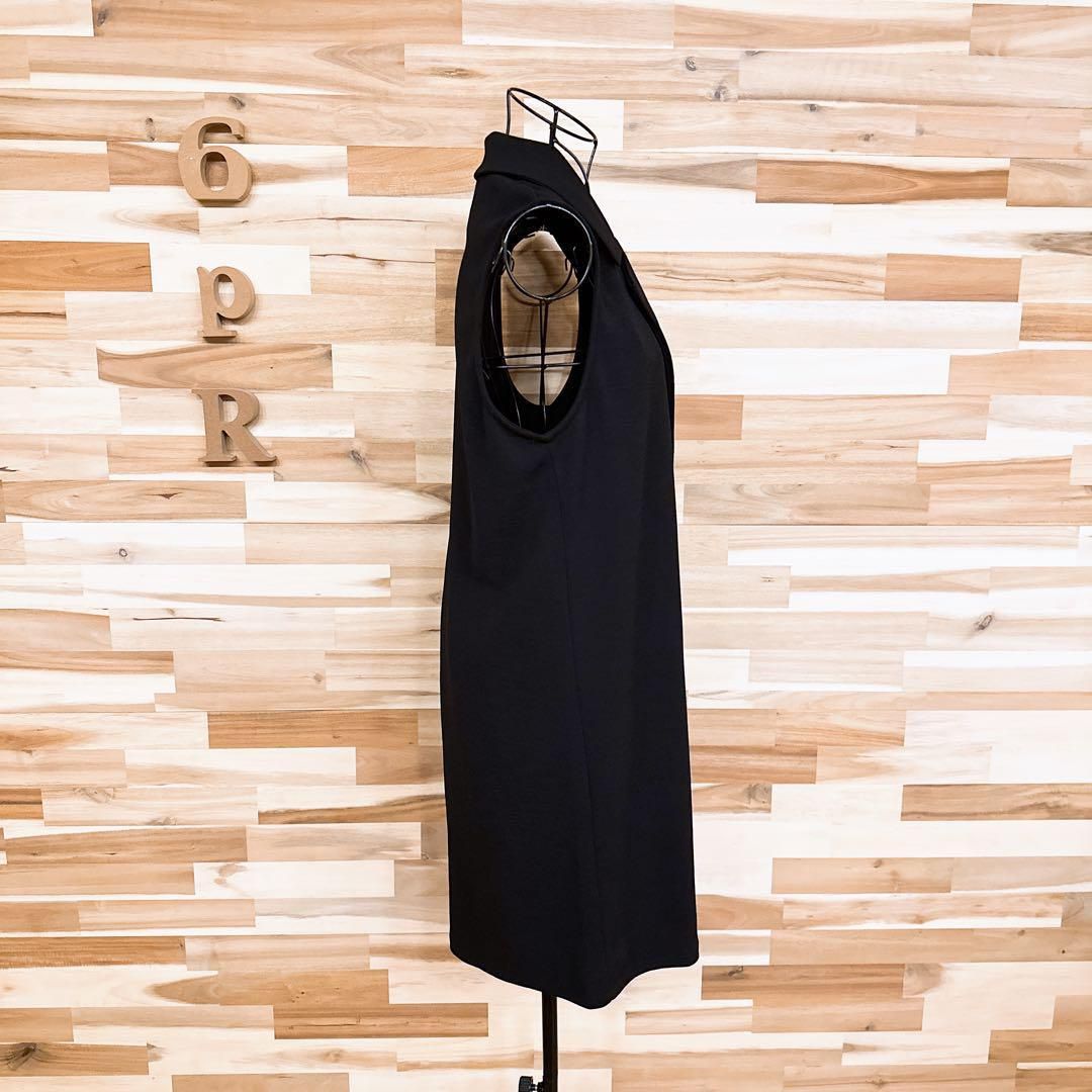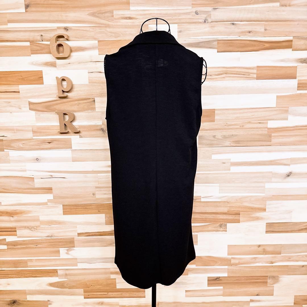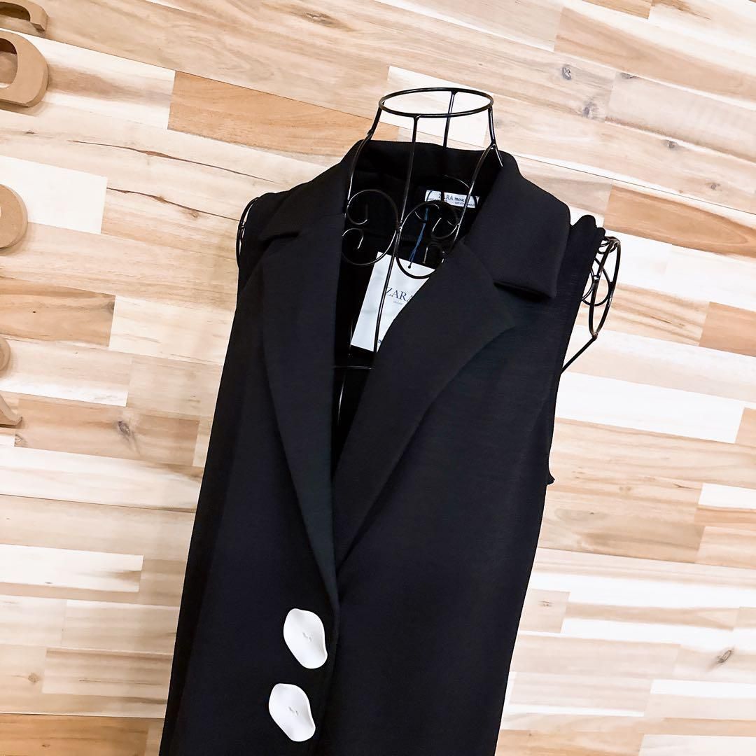 * 重ね着 *やや薄手で柔らかい生地が軽やかに落ち、自然なドレープを描く上品な質感。大きめの飾りボタンとシャープなラペルが視線を惹きつけ、ノースリーブのすっきりとしたシルエットが都会的な美しさを際立たせてくれるZARAのワンピースです。