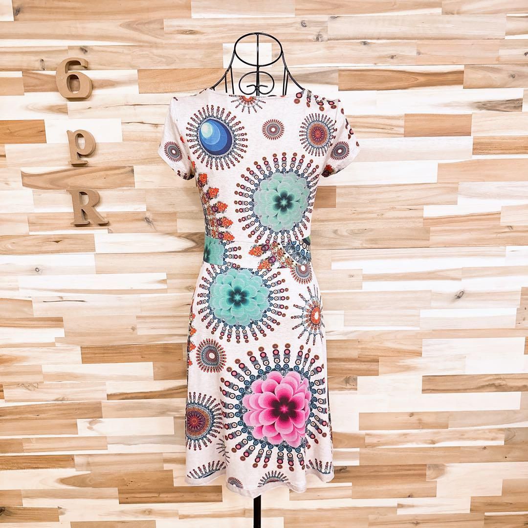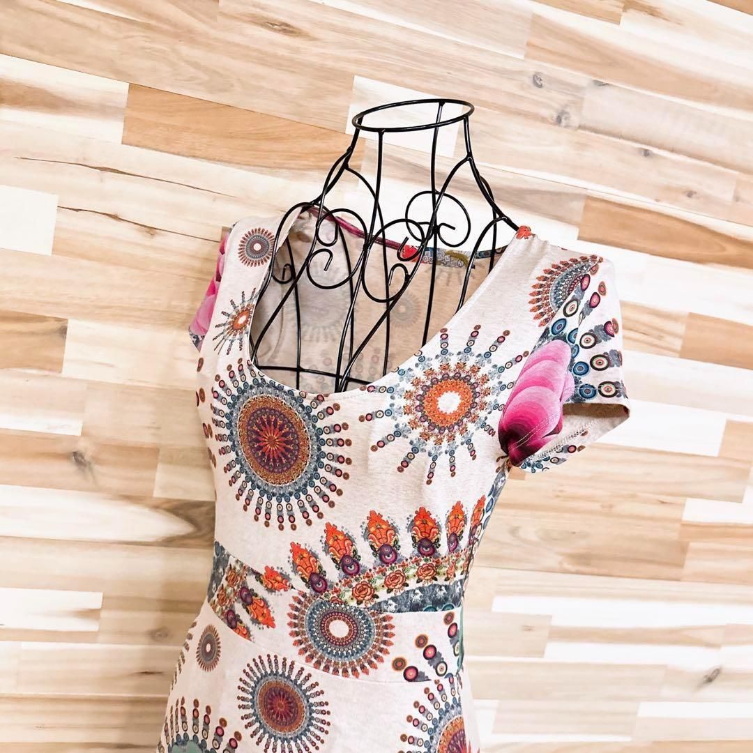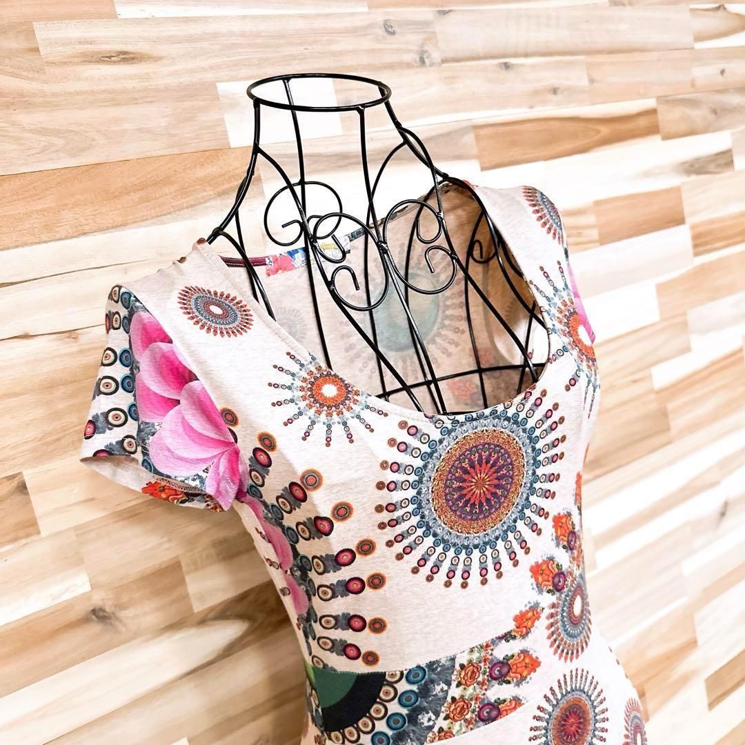 滑らかで落ち感のある質感が心地よく、アイボリーをベースに万華鏡のように繊細なフラワーモチーフがグラデーションで広がる、周囲の目を惹くデザイン。彩り豊かなプリントが動くたびに表情を変え、女性らしさとカラーを使った遊び心をバランス良く演出してくれるDesigualのワンピースです。※LGスタイラーにて除菌リフレッシュ・スチームクリーニング済みです。