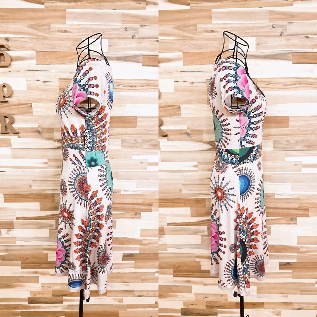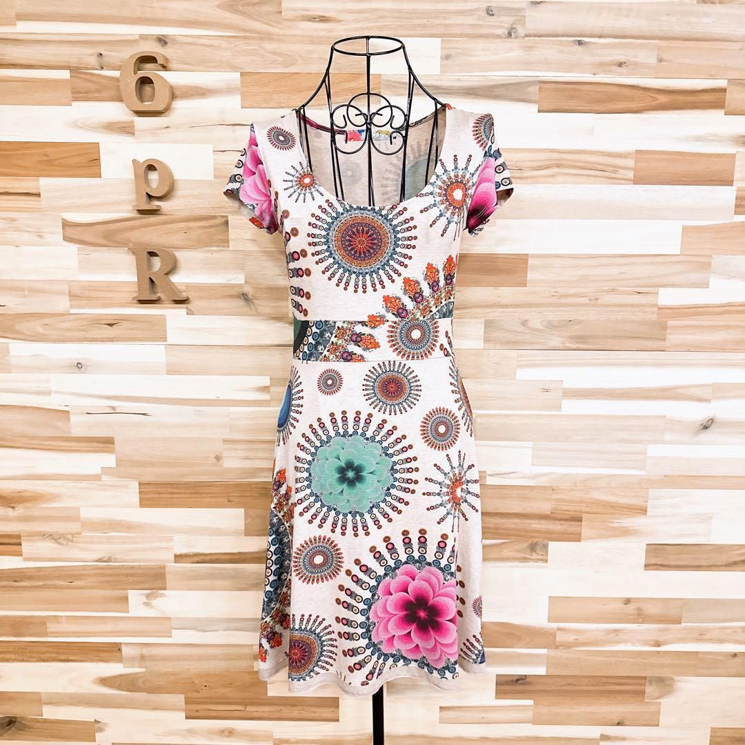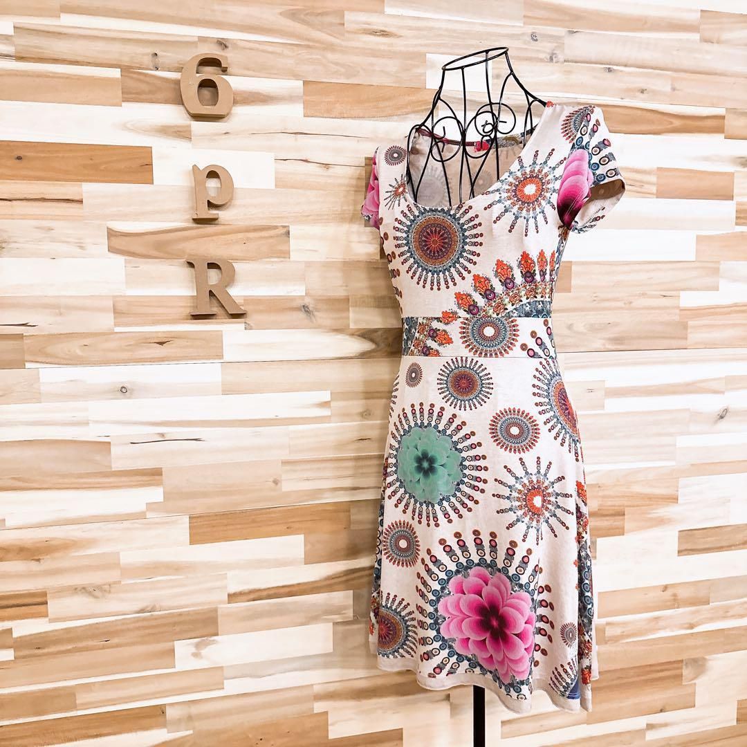 滑らかで落ち感のある質感が心地よく、アイボリーをベースに万華鏡のように繊細なフラワーモチーフがグラデーションで広がる、周囲の目を惹くデザイン。彩り豊かなプリントが動くたびに表情を変え、女性らしさとカラーを使った遊び心をバランス良く演出してくれるDesigualのワンピースです。※LGスタイラーにて除菌リフレッシュ・スチームクリーニング済みです。
