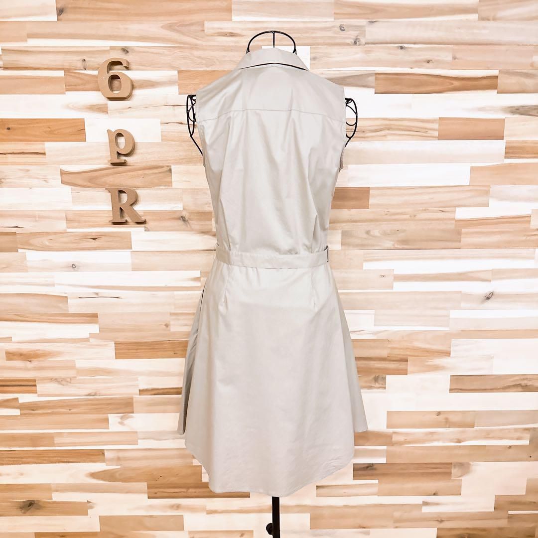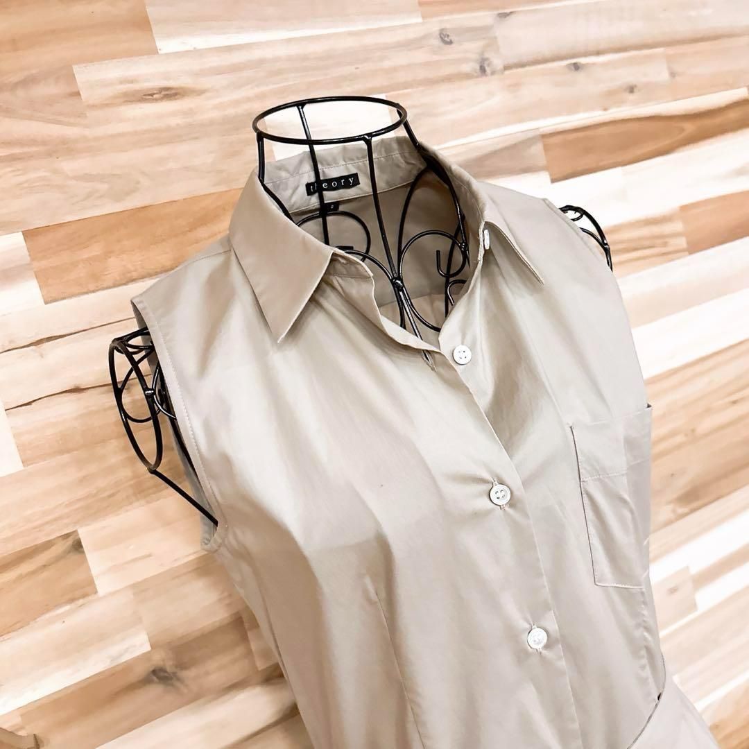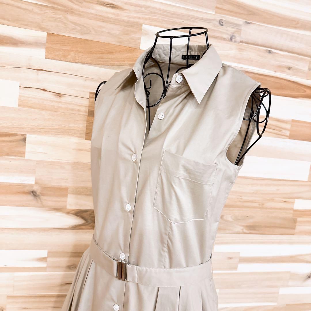 やわらかく優しい肌触りのコットンブレンド生地が心地よく、さらりと軽やかな質感が清潔感を漂わせる一着。シャツ仕立てのすっきりとした上身頃に、プリーツをあしらったスカートが揺れ、知的で洗練された印象を引き立ててくれるTheoryのワンピースです。※LGスタイラーにて除菌リフレッシュ・スチームクリーニング済みです。