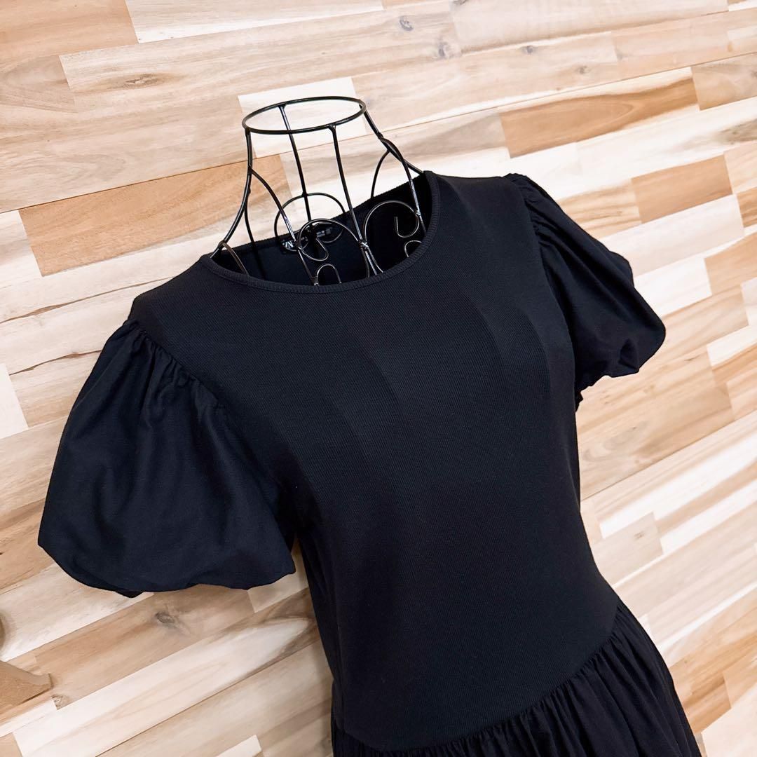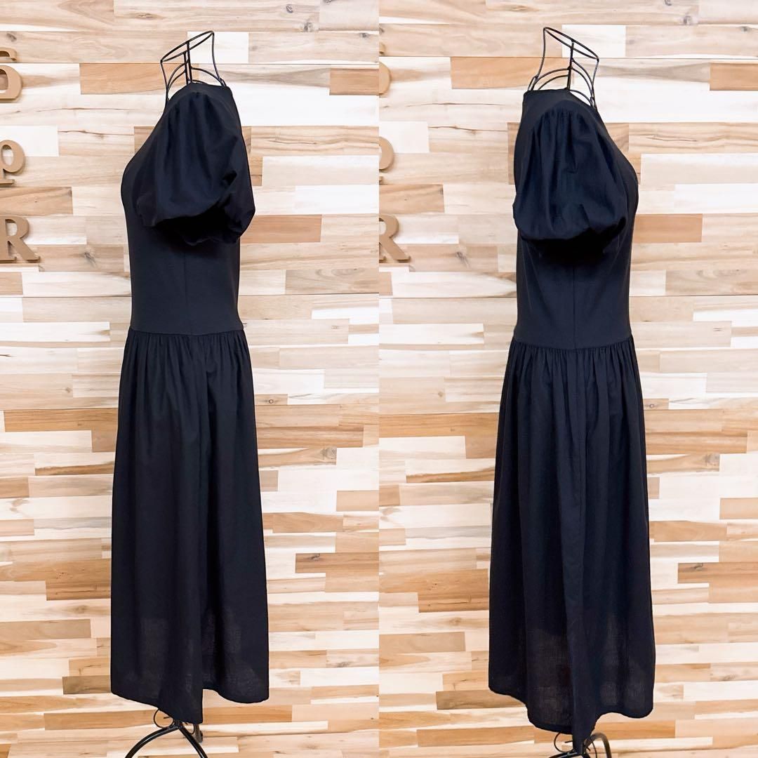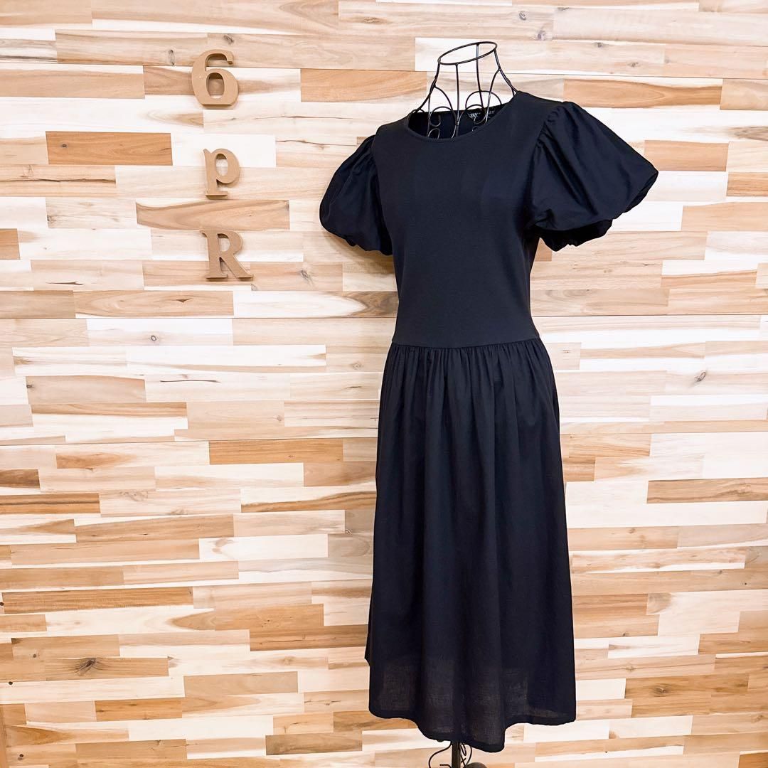 柔らかく軽やかなコットン素材で仕立てたブラックカラーが印象◎。ややハリ感のある生地がふっくらとしたパフスリーブを引き立て、自然な落ち感が魅力的。ウエスト切替とギャザーでシルエットにリズムを添え、リラックスしながらもすっきり見せを叶えてくれる一着。足元はフラットでもヒールでもバランスよく決まり、幅広いシーンに溶け込んでくれるZARAのワンピースです。※LGスタイラーにて除菌リフレッシュ・スチームクリーニング済みです。