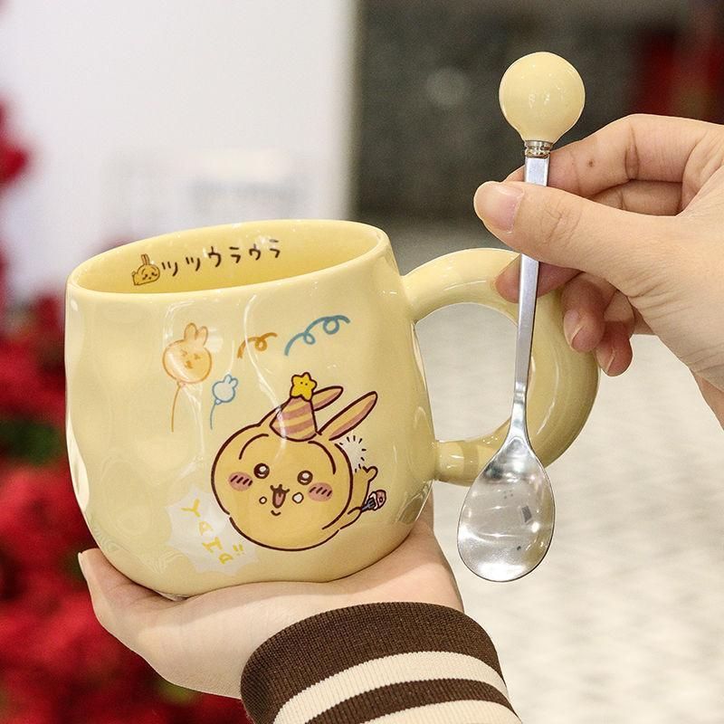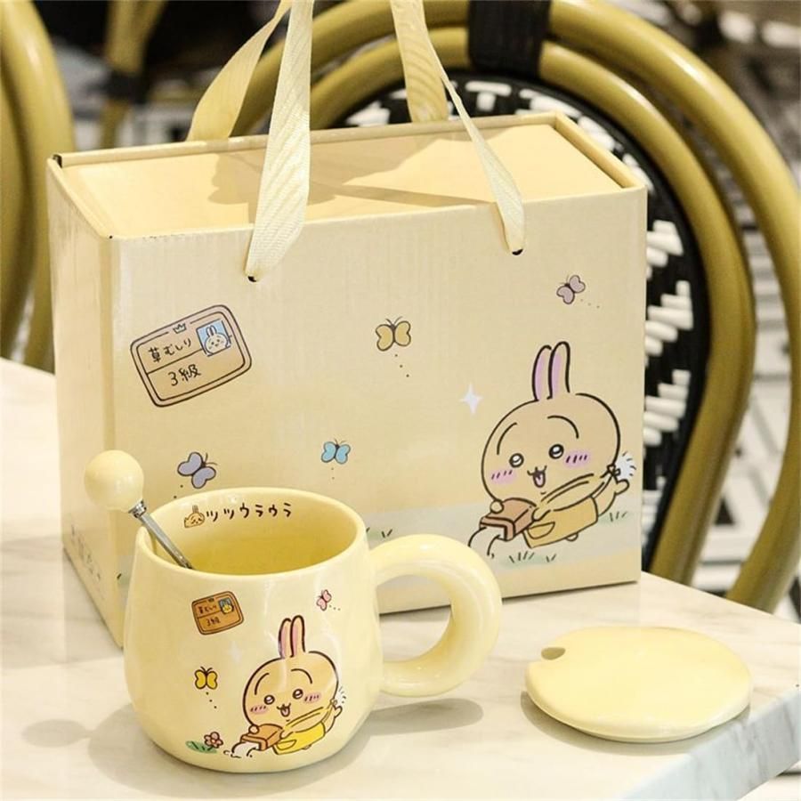 ちいかわ カップ 3点セット 蓋つき マグカップ ハチワレ うさぎ 450ml 大容量 耐熱 磁器カップ コーヒーカップ ティー 朝食カップ 萌えグッズ 誕生日 プレゼント