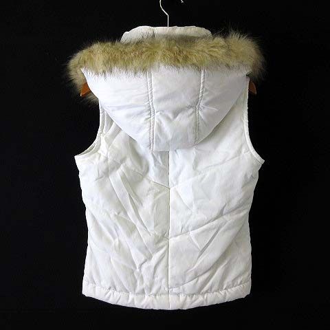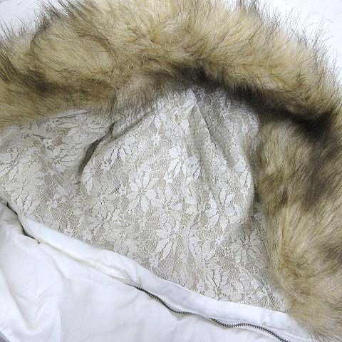 【商品名】Mari Pau ベスト ジャケット 中綿 ファー フード 裏花柄 レース ジップアップ スタンドカラー ナイロン ストレッチ M 38 オフ白 茶 ブラウン