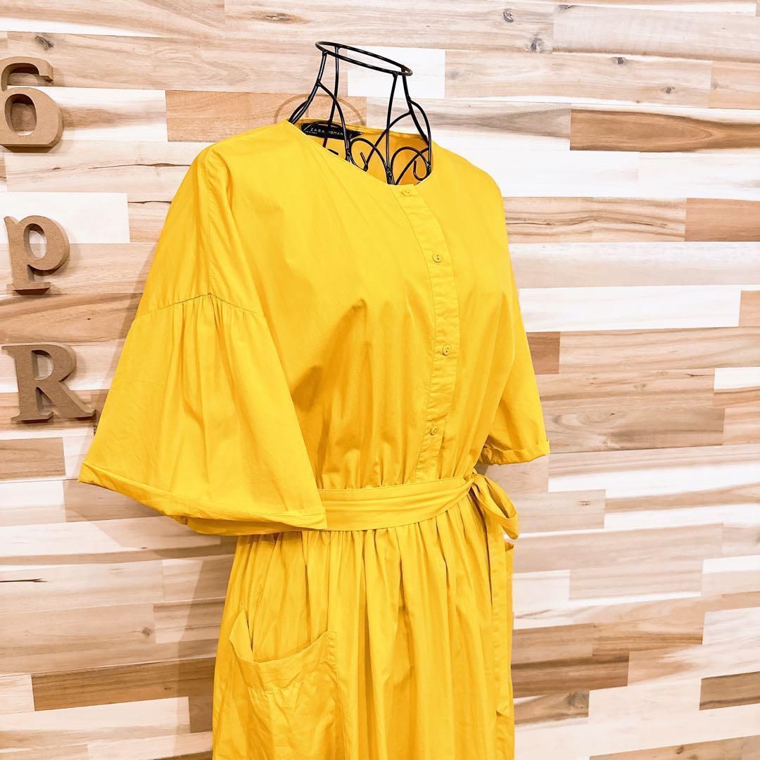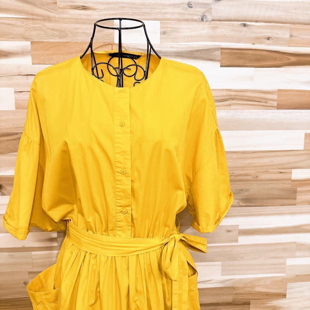 ややシャリ感のある綿素材で、さらりと涼しげな着心地。イエローが気分まで明るく彩り、ウエストの共布リボンがメリハリのあるシルエットを演出し、大きめポケットが程よい抜け感をプラス。ナチュラルな小物やサンダルを添えて、休日のリラックススタイルにぴったりなZARA WOMANのワンピースです。※LGスタイラーにて除菌リフレッシュ・スチームクリーニング済みです。