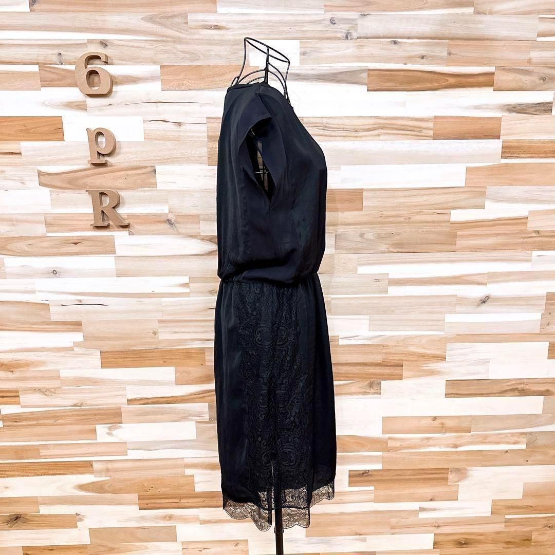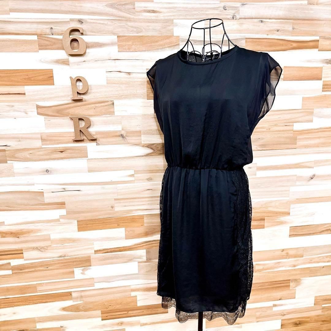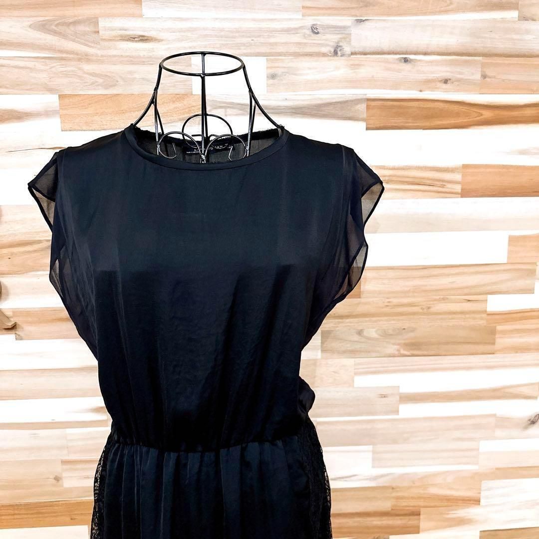 光沢があり高級感のあるブラックカラー。サイドとインナーから繊細なレースが程よく華やかな印象をプラスしてくれるZARA WOMANのワンピースです。
