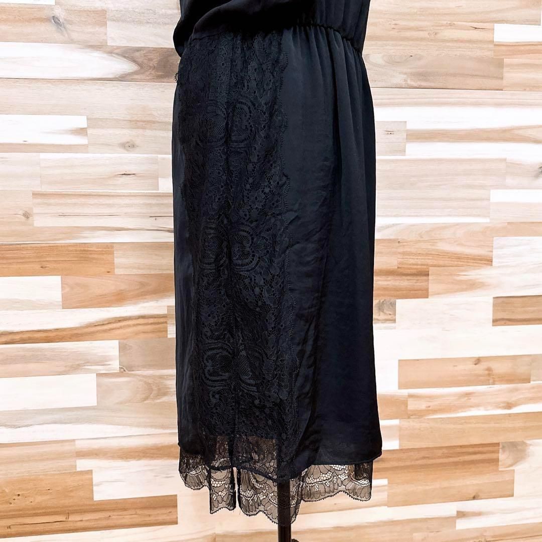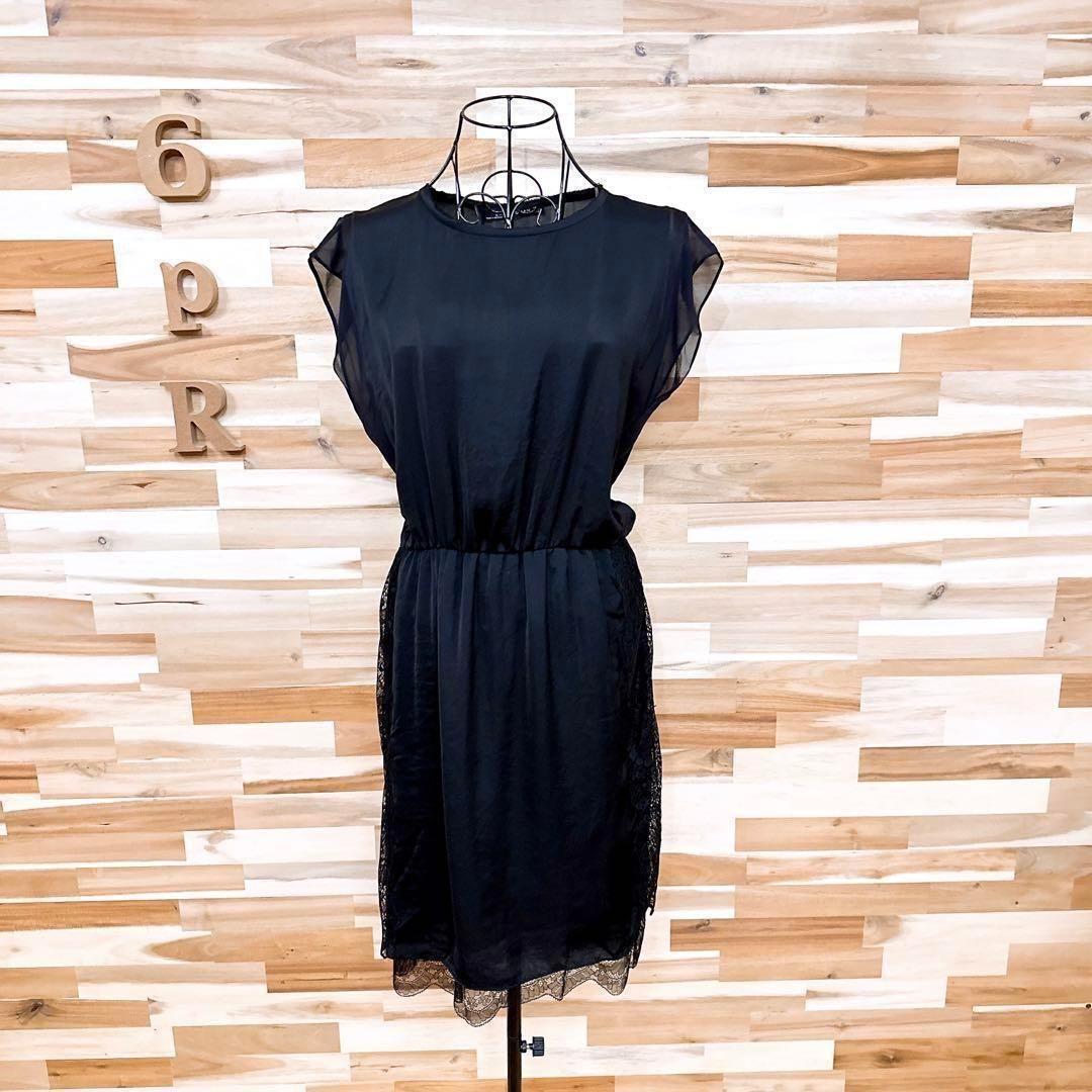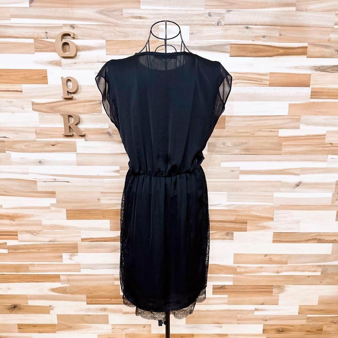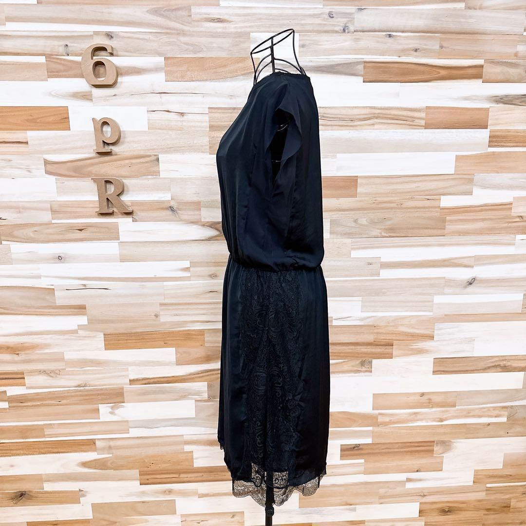 光沢があり高級感のあるブラックカラー。サイドとインナーから繊細なレースが程よく華やかな印象をプラスしてくれるZARA WOMANのワンピースです。