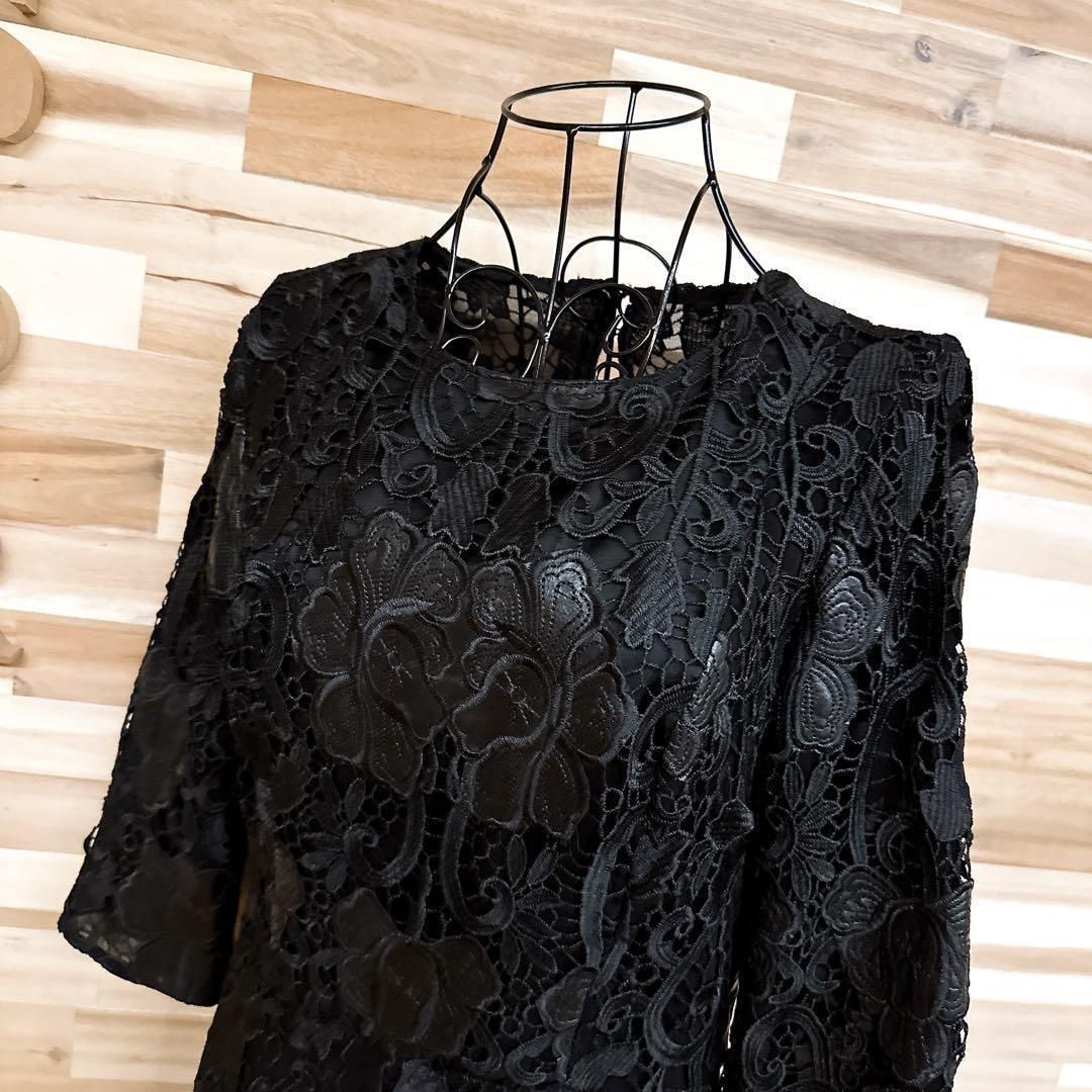 立体的な花模様が浮かび上がる厚みのある刺繍レース×レザーが贅沢なルックス。マットなブラックがベースで引き締まった印象に、裾のスカラップカットがアクセント。アクセやヒールとの組み合わせで、華やかな席にも映える、大人オシャレなZARA WOMANのワンピースです。