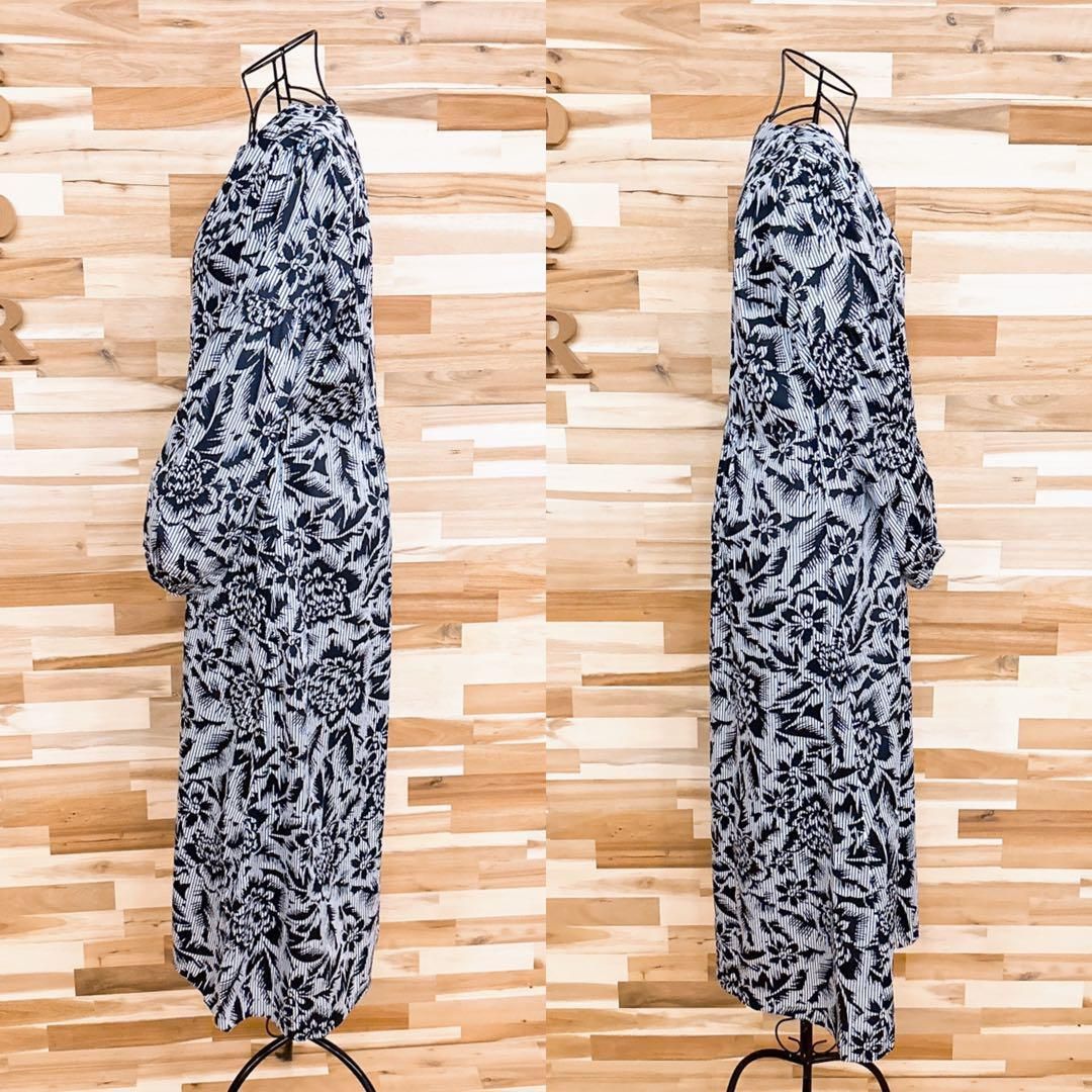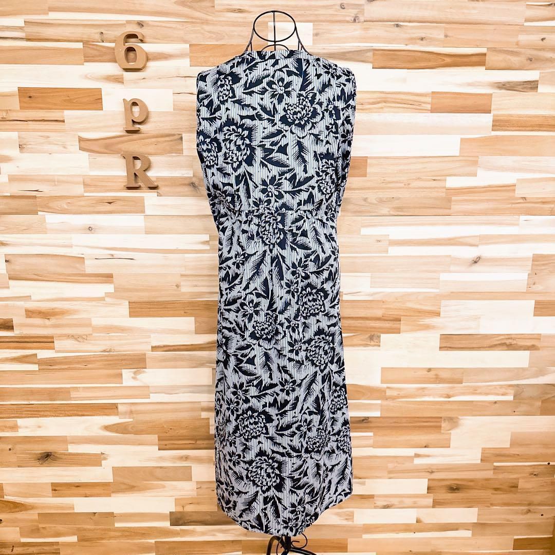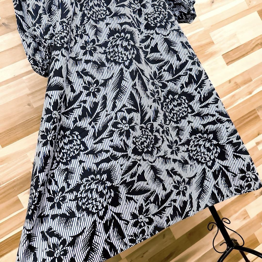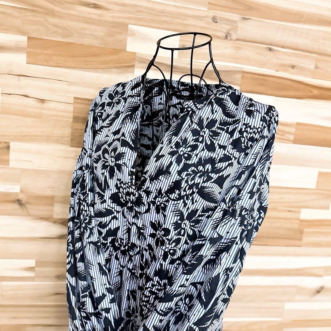サラリとした心地よい素材で、ネイビーベース×ホワイトのボタニカル柄が涼しげで爽やかなアクセント。Vネックで顔周りをスッキリと魅せ、カーディガンやサンダルとの組み合わせで、日常にもリゾートにも映える、大人オシャレなZARA WOMANのワンピースです。※LGスタイラーにて除菌リフレッシュ・スチームクリーニング済みです。