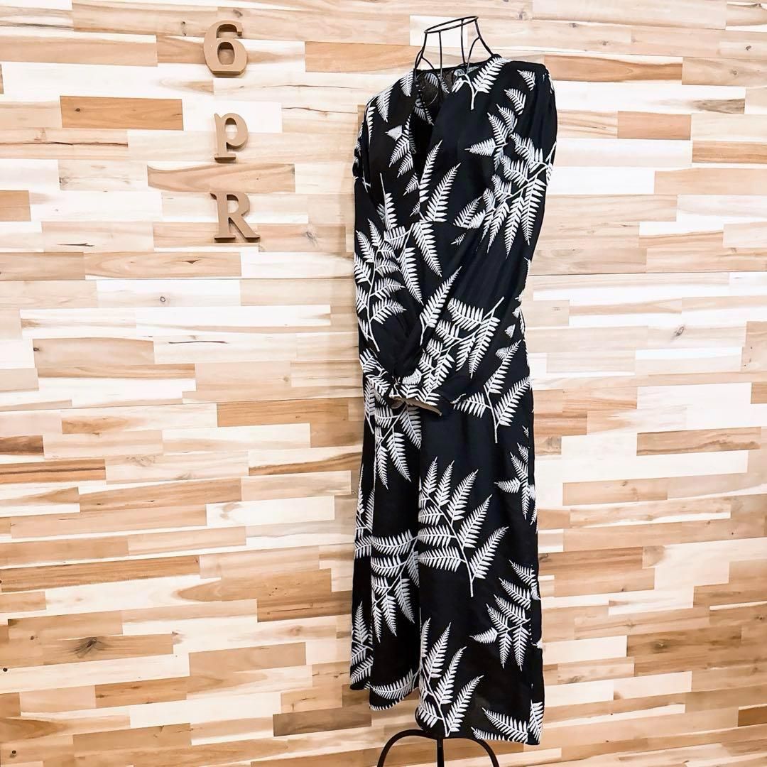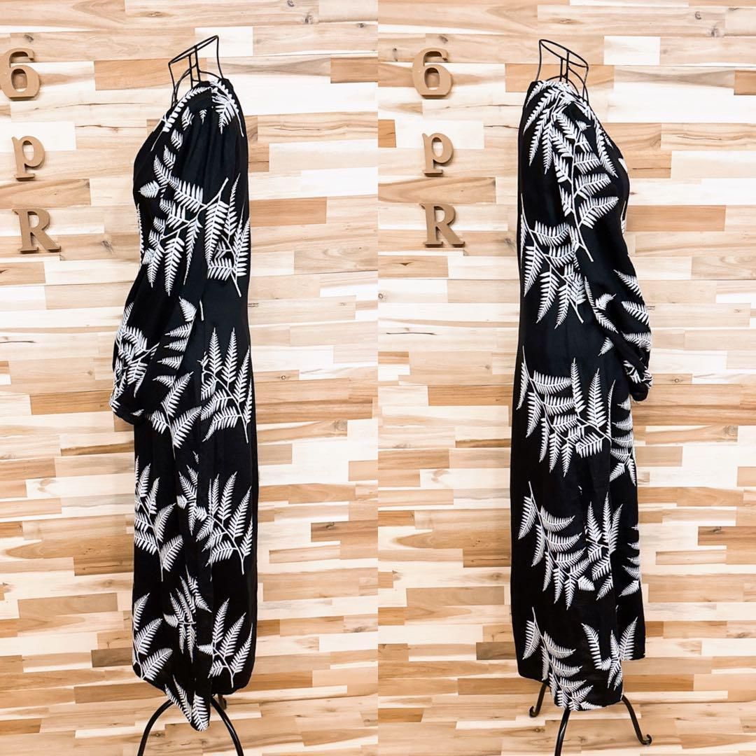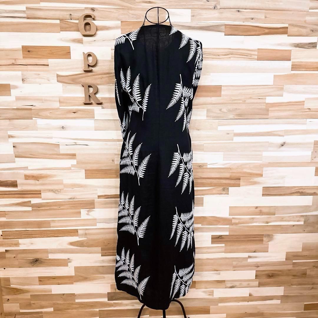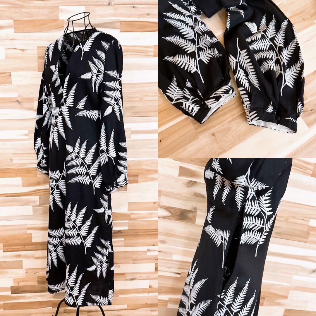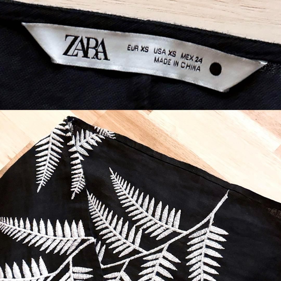 * スタンドVネック *薄手ながらも程よいハリを持つ生地感が、さらりとした肌触りで軽やかに揺れる一着。全身に施されたリーフ刺繍が立体感を生み、シックな黒地に白糸が映えることで奥行きのある上品さを添え、ナチュラルさとエレガンスが美しく溶け合うZARAのワンピースです。※LGスタイラーにて除菌リフレッシュ・スチームクリーニング済みです。