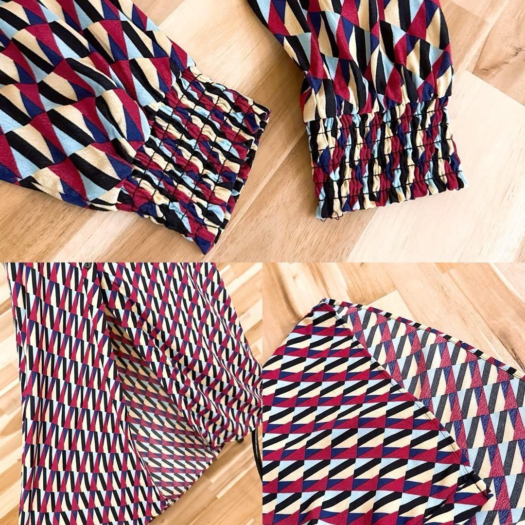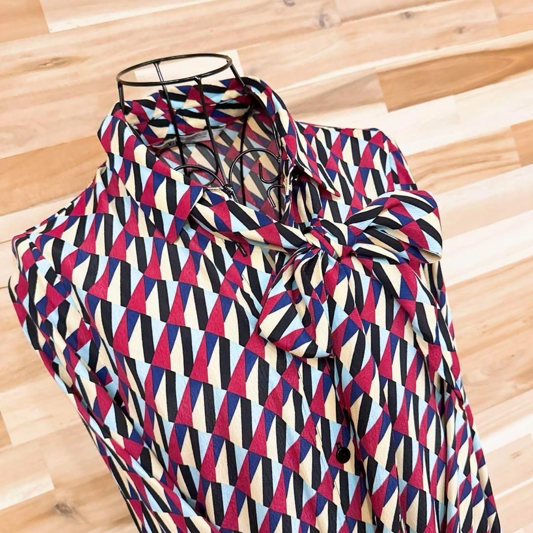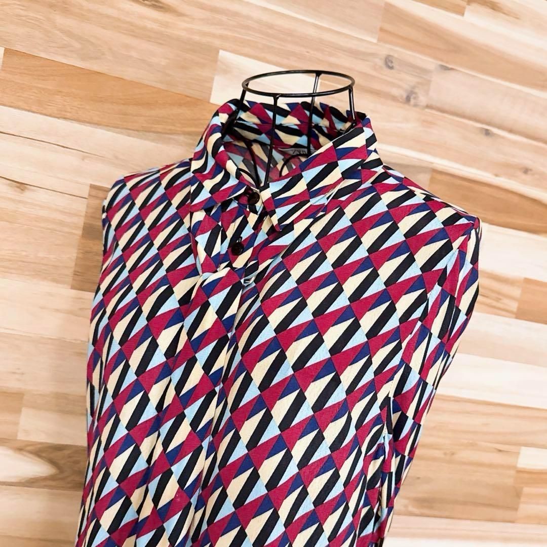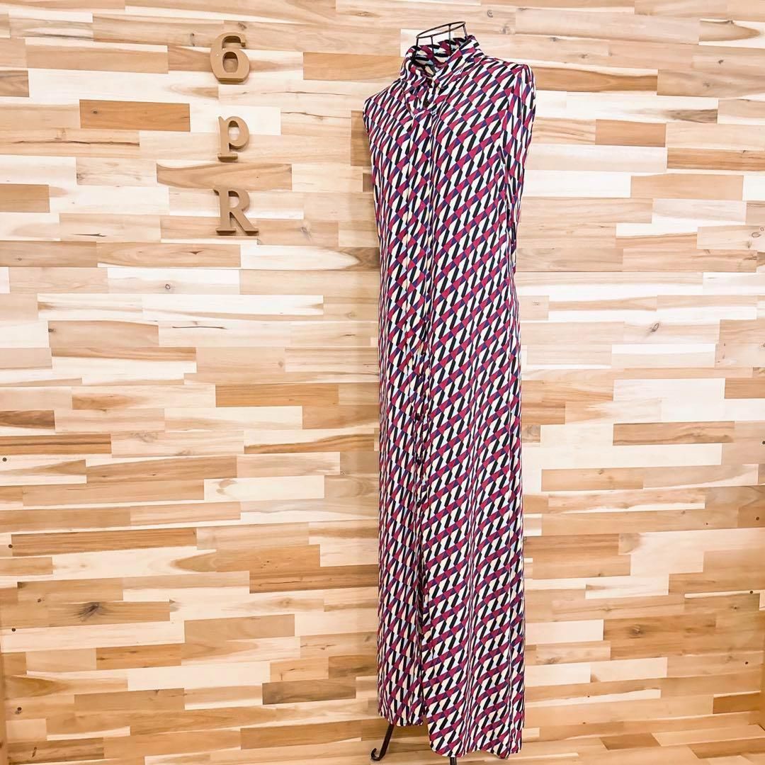 * 幾何学 *薄手でさらりとした生地感が心地よく、全身に描かれた幾何学模様がスタイリングに華やぎをプラス。付属のリボンタイがアクセントとなり、縦に流れるロングシルエットがすっきりとしたラインを強調して大人らしいモード感を演出してくれるZARAのワンピースです。※LGスタイラーにて除菌リフレッシュ・スチームクリーニング済みです。