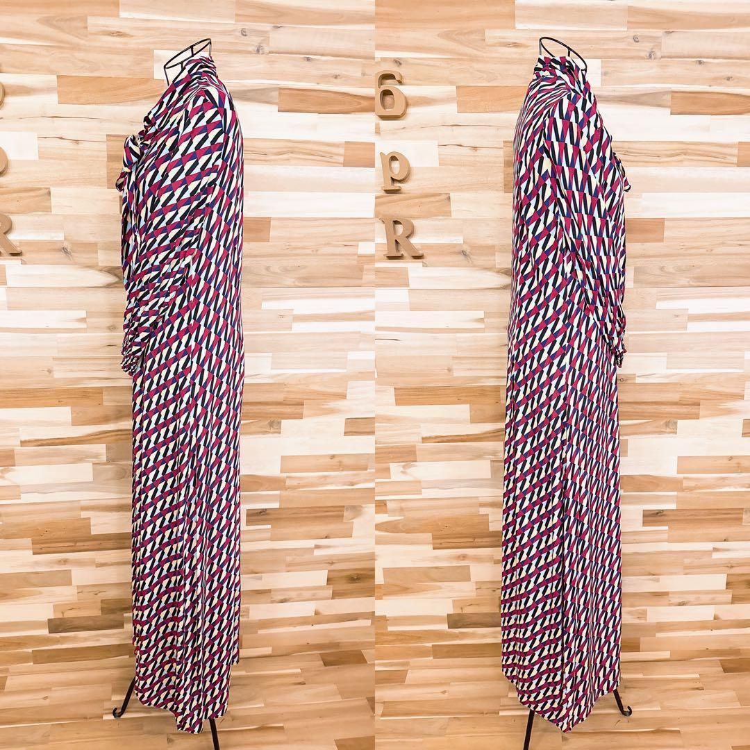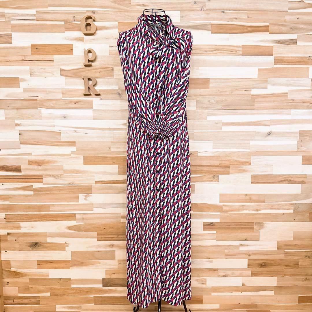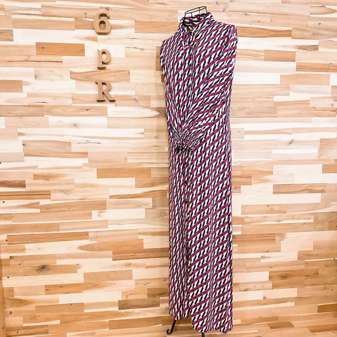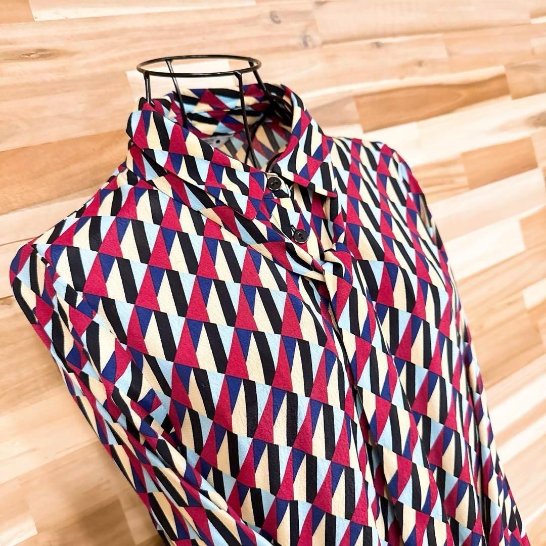 * 幾何学 *薄手でさらりとした生地感が心地よく、全身に描かれた幾何学模様がスタイリングに華やぎをプラス。付属のリボンタイがアクセントとなり、縦に流れるロングシルエットがすっきりとしたラインを強調して大人らしいモード感を演出してくれるZARAのワンピースです。※LGスタイラーにて除菌リフレッシュ・スチームクリーニング済みです。