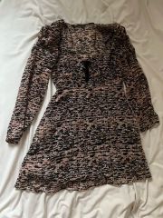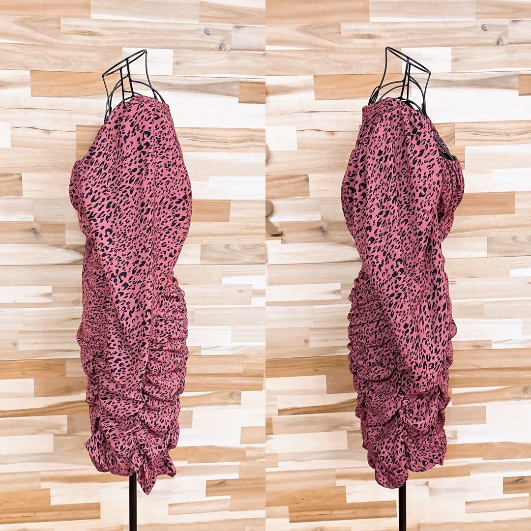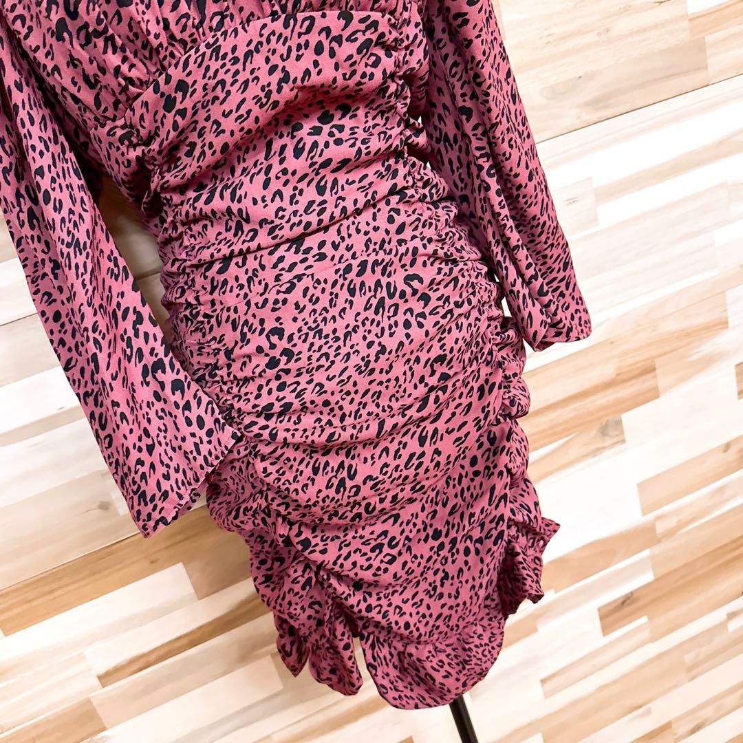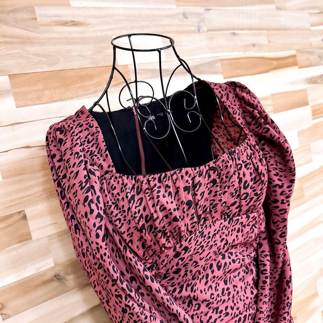 * 1165/160/172 *落ち感のある薄手の素材感で、さらりとした肌触り。主張しすぎないピンクベースにブラックのレオパード柄が映え、存在感たっぷりな一着。サイドに寄せたギャザーがヒップラインを包み込み、美しいフォルムを強調。ジャケットを羽織ってもバランスよく決まる仕立てが魅力的なZARAのワンピースです。※LGスタイラーにて除菌リフレッシュ・スチームクリーニング済みです。