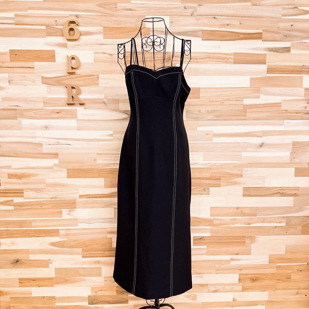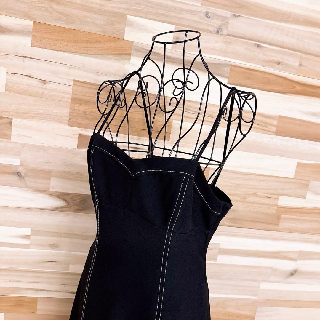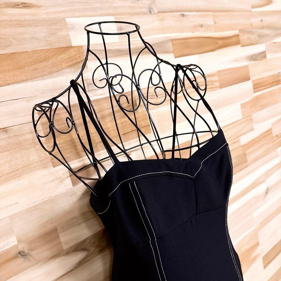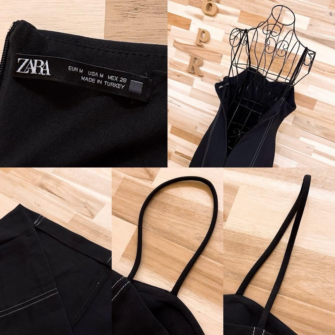 * キャミワンピ *しっかりとしたやや厚みのある柔らかい生地がシルエットを美しく保ち、直線的なステッチが縦ラインを強調。深みのあるブラックにホワイトのステッチが映えるデザインが凛とした雰囲気を演出。大胆な背中のカッティングとスリットが、動きにニュアンスを添えつつ、ジャケットとの重ね着にも映えるZARAのワンピースです。※LGスタイラーにて除菌リフレッシュ・スチームクリーニング済みです。T