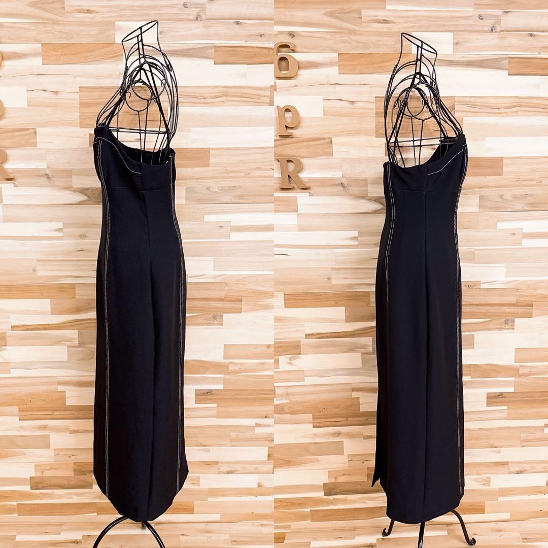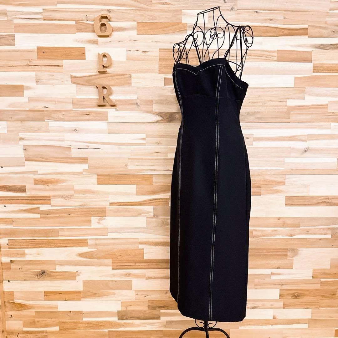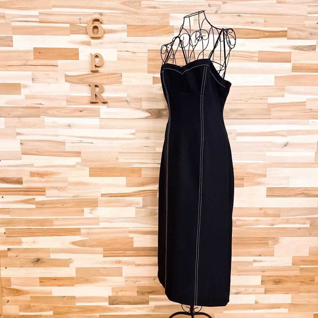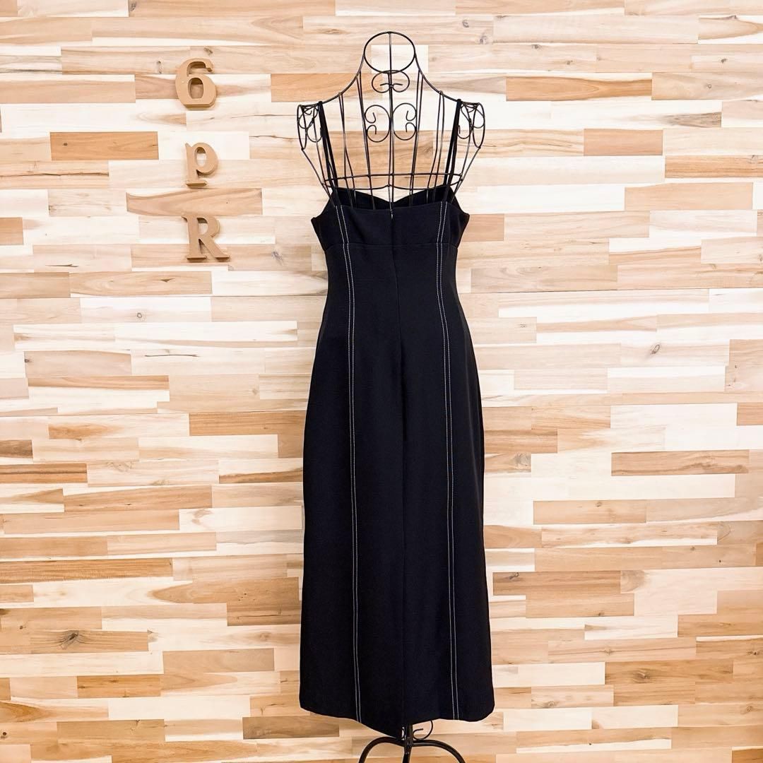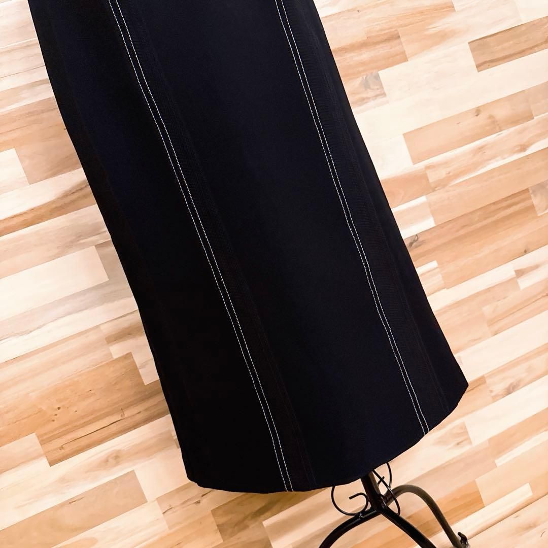 * キャミワンピ *しっかりとしたやや厚みのある柔らかい生地がシルエットを美しく保ち、直線的なステッチが縦ラインを強調。深みのあるブラックにホワイトのステッチが映えるデザインが凛とした雰囲気を演出。大胆な背中のカッティングとスリットが、動きにニュアンスを添えつつ、ジャケットとの重ね着にも映えるZARAのワンピースです。※LGスタイラーにて除菌リフレッシュ・スチームクリーニング済みです。T