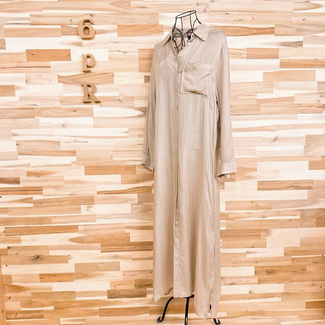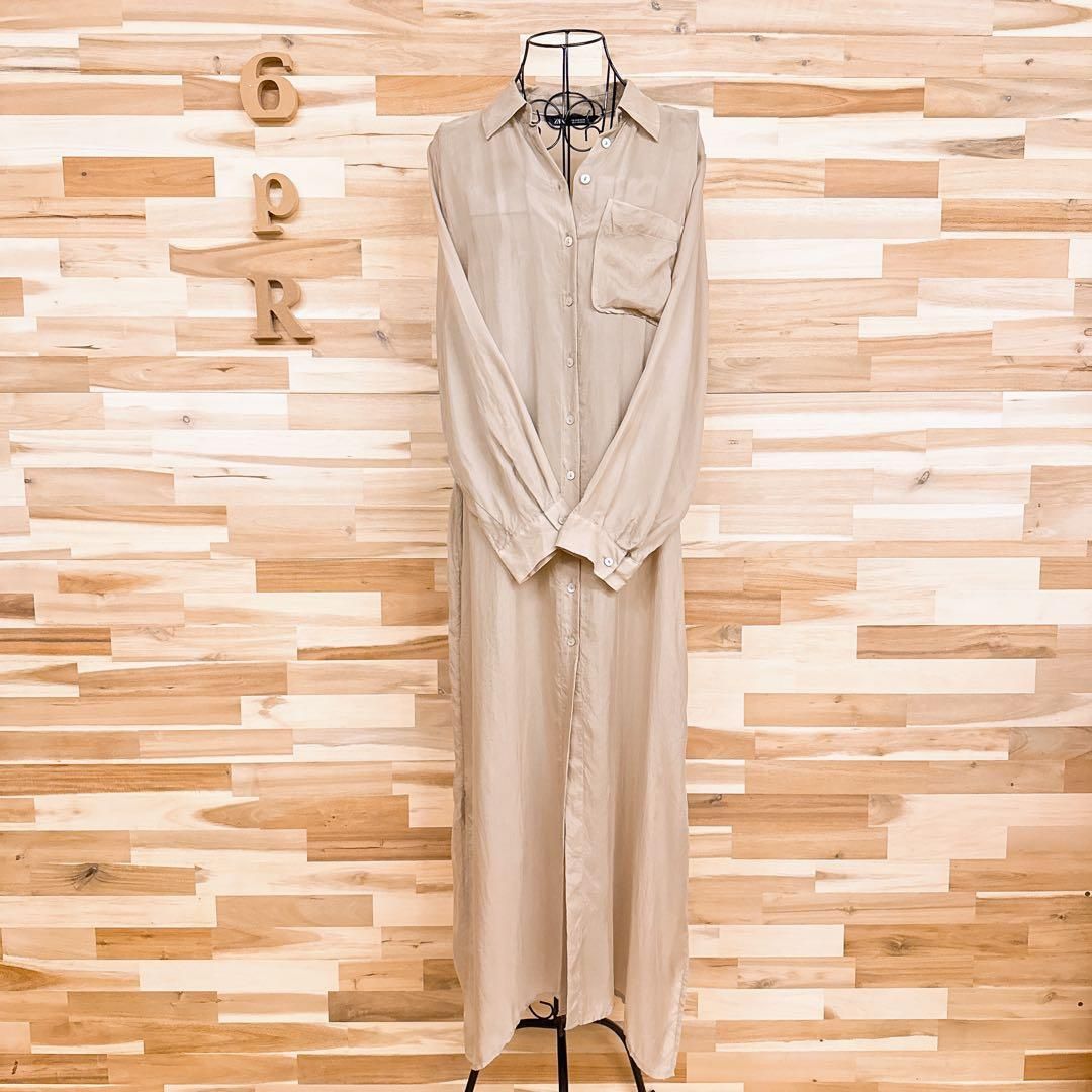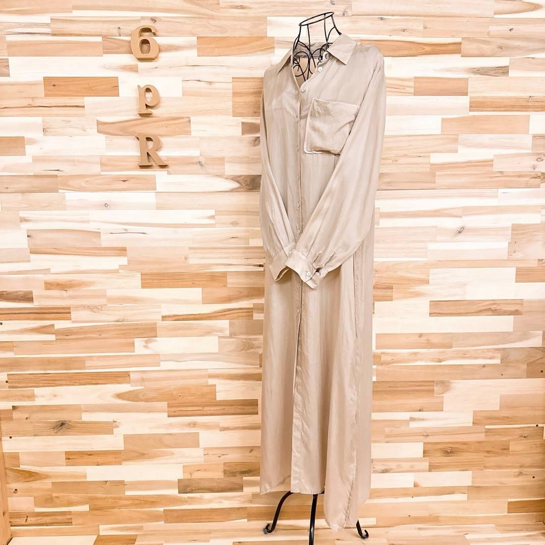 わずかに光沢を含むしっとりとした独特の素材感が肌にやさしく、柔らかな落ち感が全体を美しく包み込む一着。ベージュトーンのナチュラルな色味に、胸ポケットが程よいアクセント。サイドスリットが動きやすさと抜け感を演出し、リラックス感あるパンツや細身のボトムとのレイヤードで軽快な装いにもおすすめなZARAのワンピースです。※LGスタイラーにて除菌リフレッシュ・スチームクリーニング済みです。