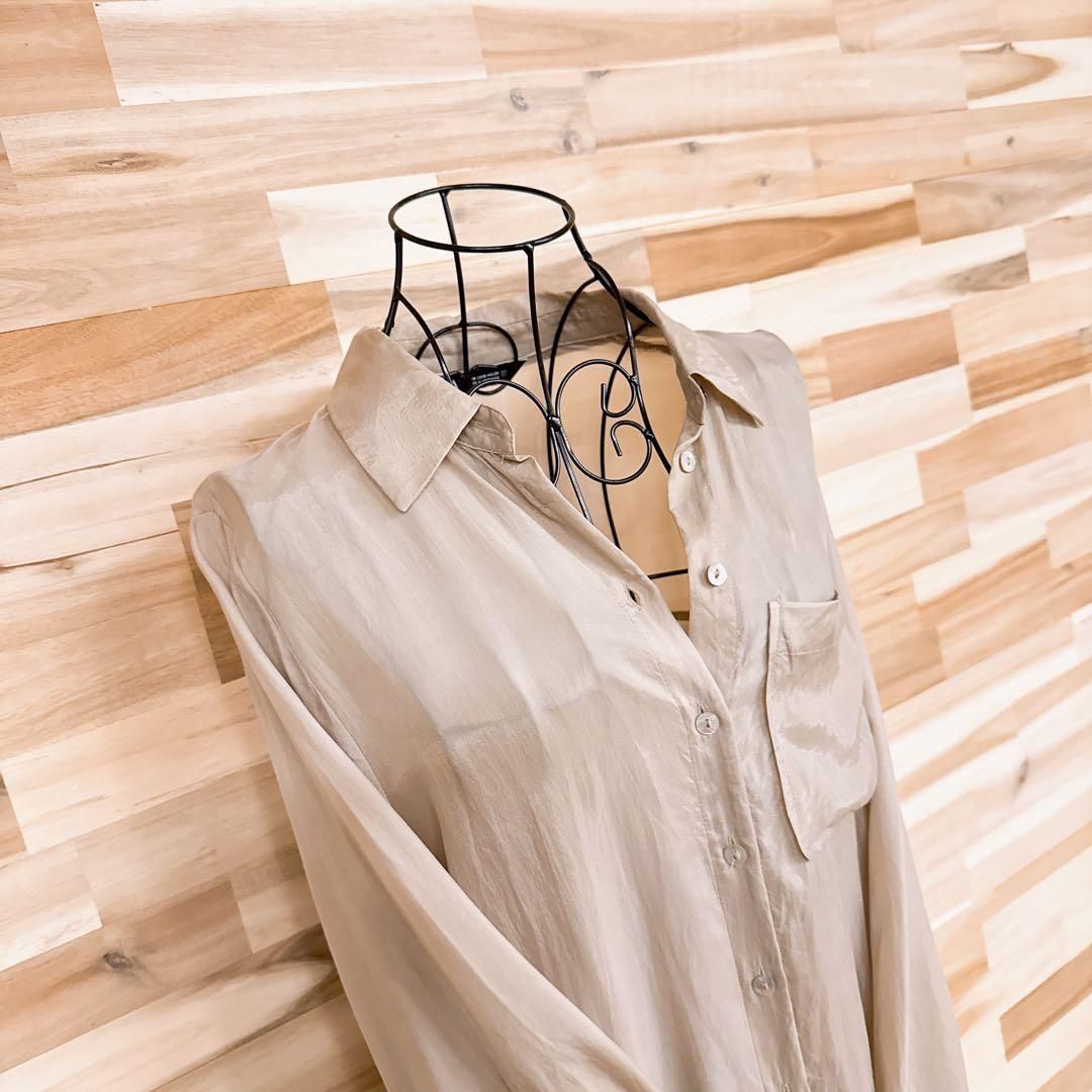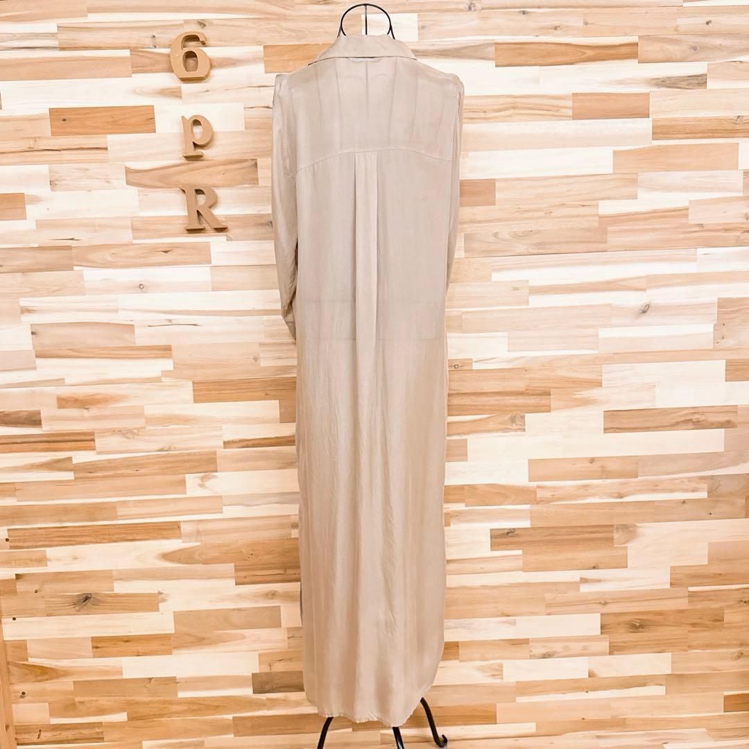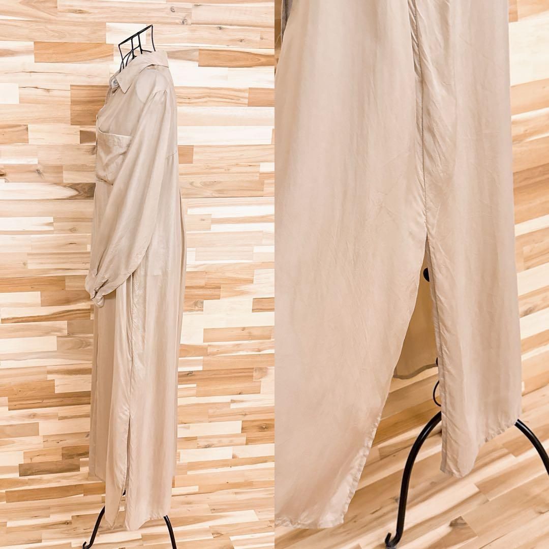 わずかに光沢を含むしっとりとした独特の素材感が肌にやさしく、柔らかな落ち感が全体を美しく包み込む一着。ベージュトーンのナチュラルな色味に、胸ポケットが程よいアクセント。サイドスリットが動きやすさと抜け感を演出し、リラックス感あるパンツや細身のボトムとのレイヤードで軽快な装いにもおすすめなZARAのワンピースです。※LGスタイラーにて除菌リフレッシュ・スチームクリーニング済みです。
