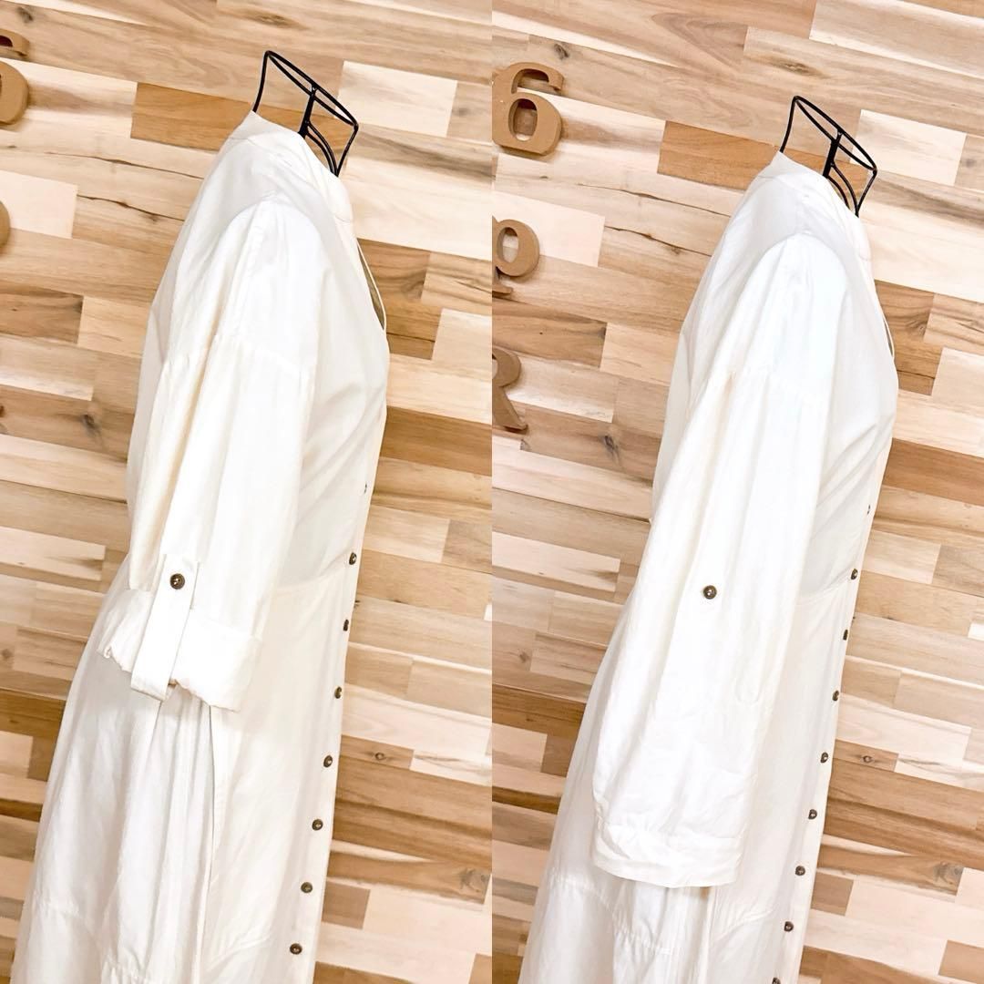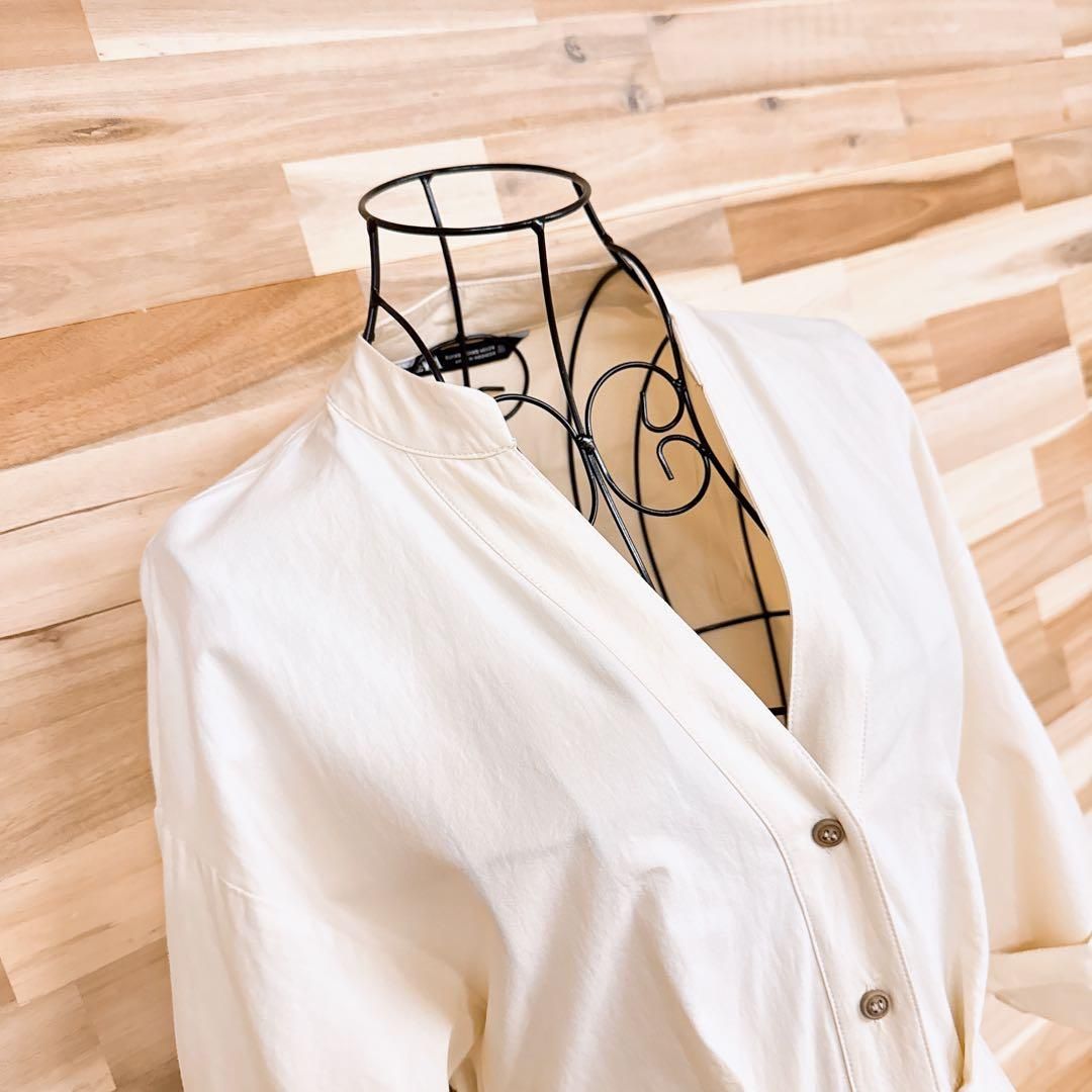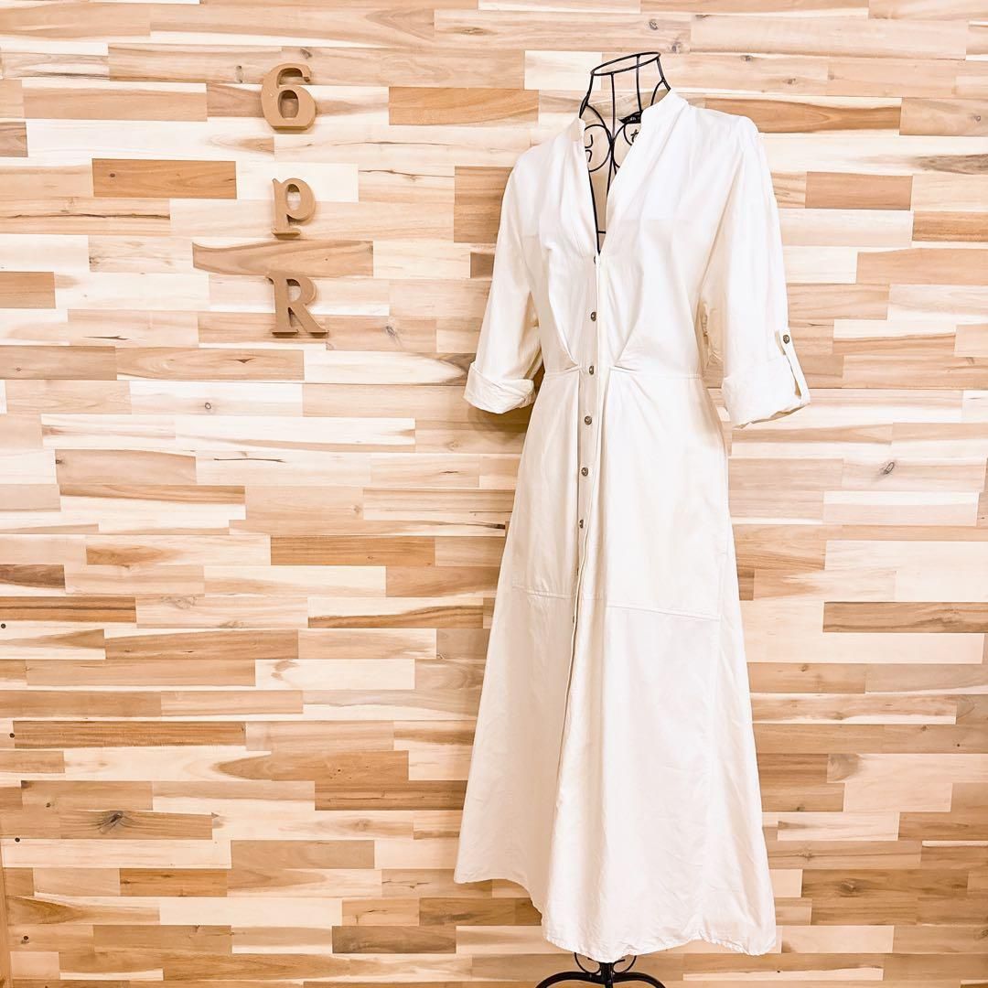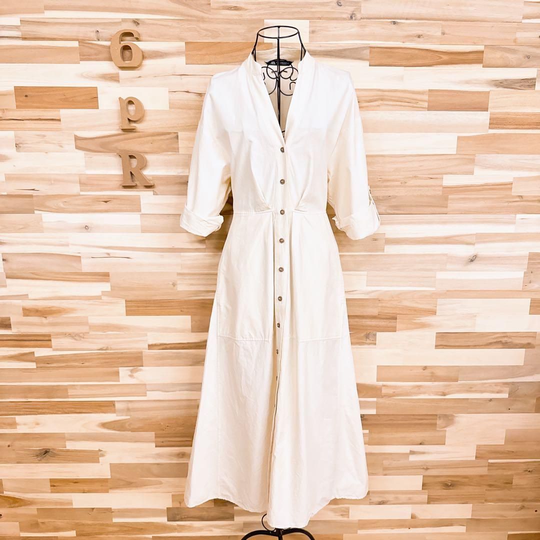 * Vネック *軽やかさの中にほんのりハリを感じる質感で、すっきりとした印象に。ベースはやわらかなアイボリー、ほんのり光を含んだようなやさしい色合い。袖口はロールアップ仕様で、抜け感のあるアレンジも。メリハリのある女性らしいシルエットが大人の雰囲気漂うZARAのワンピースです。※LGスタイラーにて除菌リフレッシュ・スチームクリーニング済みです。