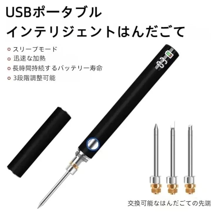 付属コンポーネント USB充電ケーブル, はんだごてスタンド, コテ先3種, 日本語取説