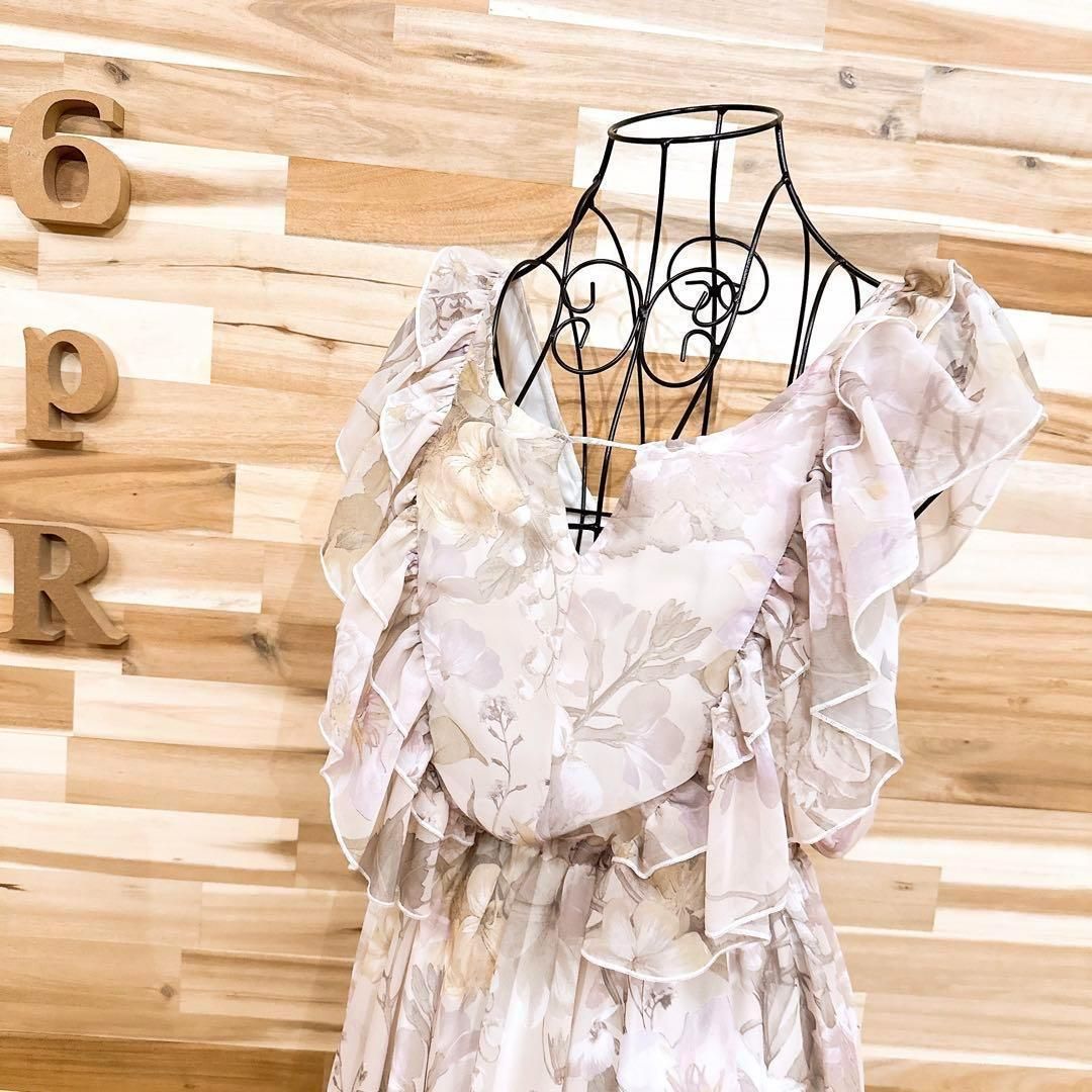 ふんわりとエアリーな生地感。上品な色合いと花柄デザインで程良い華やかさと女性らしさの漂うeimy istoireのワンピースです。※LGスタイラーにて除菌リフレッシュ・スチームクリーニング済みです。