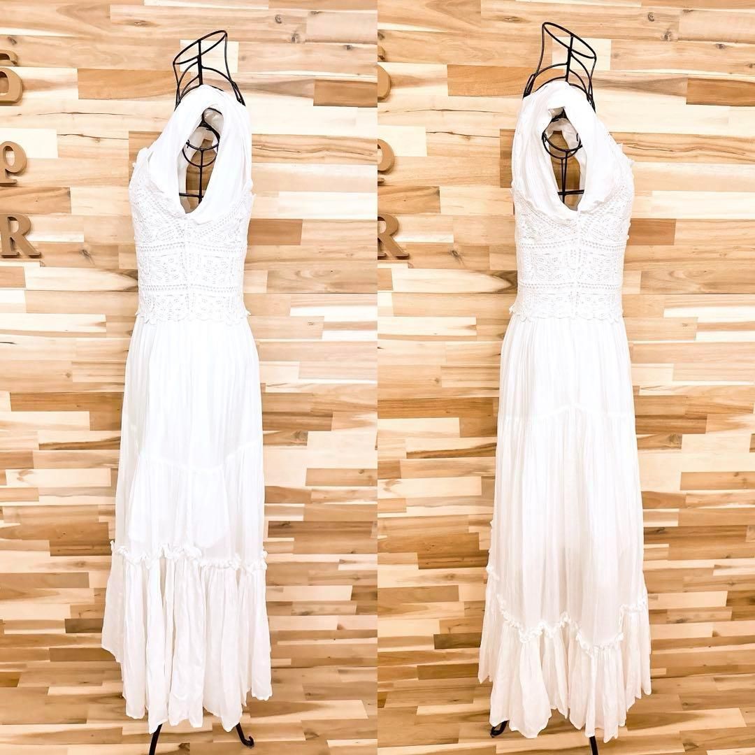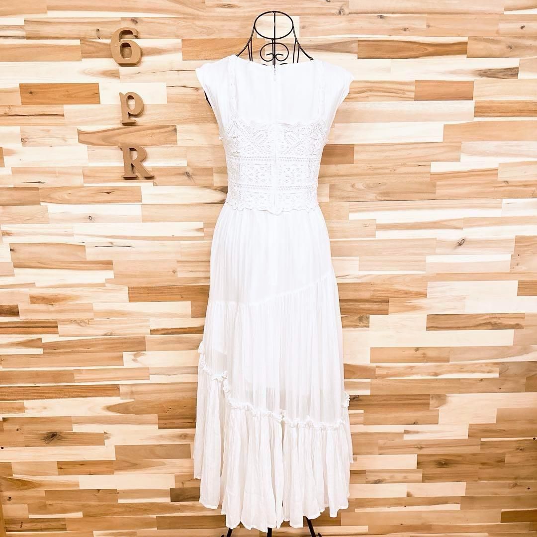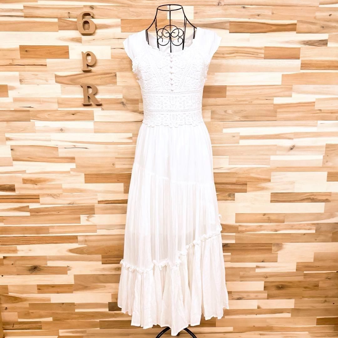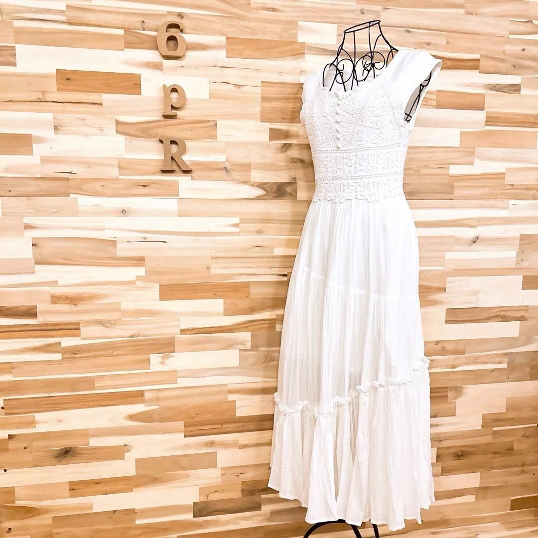 * 02-2125500084 / かぎ針編みキャミソールドッキングワンピース *繊細な編み込みビスチェがレイヤードされた、アシンメトリーのロングシルエット。裾に向かってふわっと広がるボリュームたっぷりのエアリーな素材感。清潔感がありクリーンな印象を与えてくれるホワイトカラーでまとめられた、大人かわいいREDYAZELのワンピースです。定価16500円。※LGスタイラーにて除菌リフレッシュ・スチームクリーニング済みです。