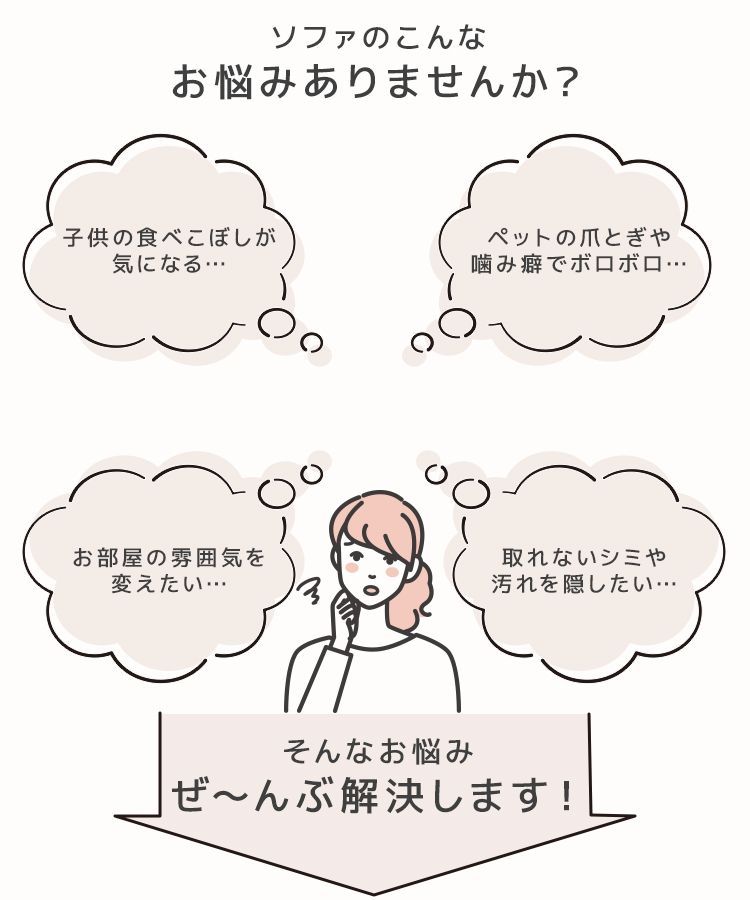 子どもの食べこぼしや飲みこぼし、ペットのひっかきから大切なソファを守ります。