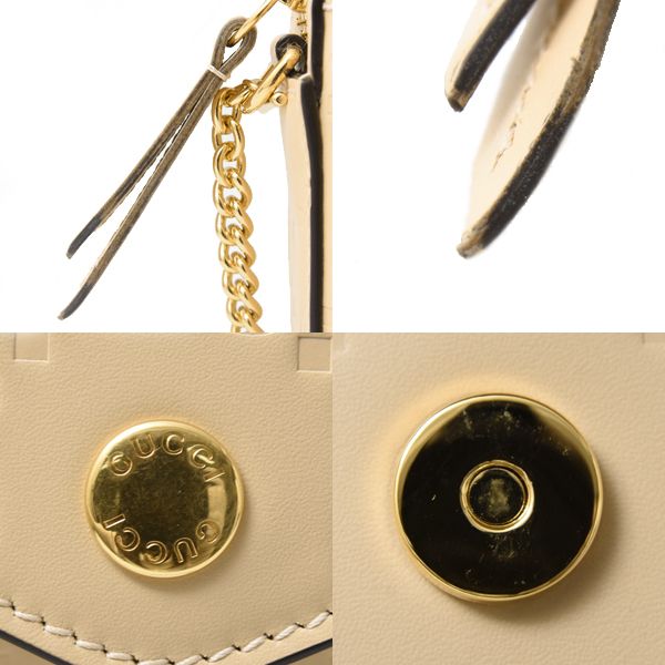 お色はマットなクリームベージュ色で、モノトーンコーデがお好きな方にもおすすめの逸品です。取り外し可能な細身のチェーンショルダーはゴールドカラーで上品な雰囲気を醸し出します。
