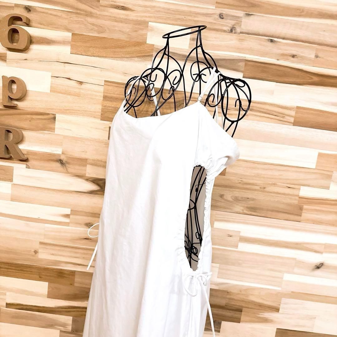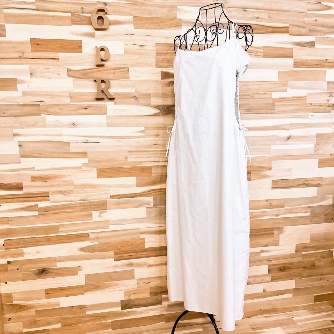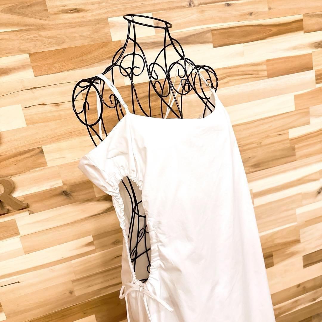 * キャミワンピ *しっかりとした生地感でさらりとした肌触りの綿(コットン)生地。清潔感のあるナチュラルなホワイトカラーでまとめられた一着。カットアウトのディテールが女性らしい柔らかい曲線美を惹き立ててくれるZARAのワンピースです。同じデザインを数多く作らないブランドのため、出回る数が少なくすでに完売しているお品です。※LGスタイラーにて除菌リフレッシュ・スチームクリーニング済みです。
