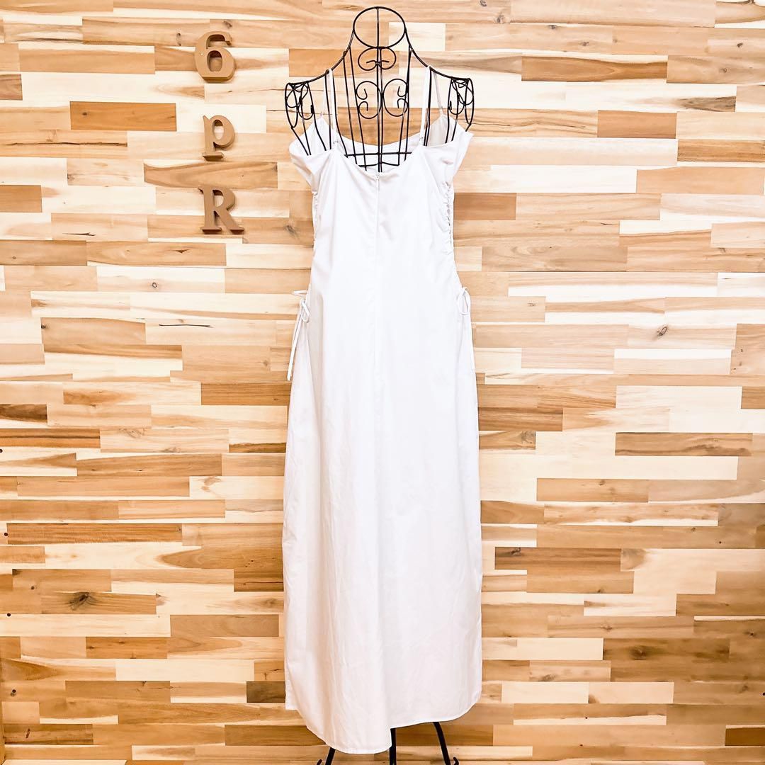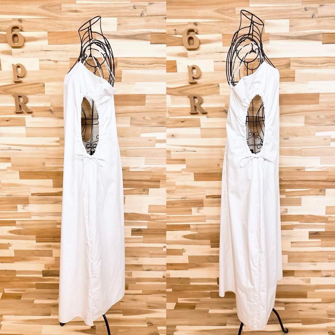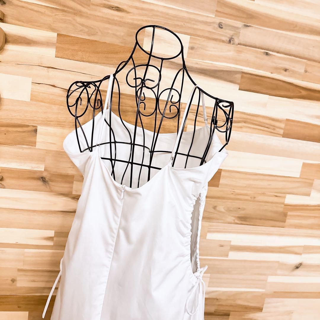 * キャミワンピ *しっかりとした生地感でさらりとした肌触りの綿(コットン)生地。清潔感のあるナチュラルなホワイトカラーでまとめられた一着。カットアウトのディテールが女性らしい柔らかい曲線美を惹き立ててくれるZARAのワンピースです。同じデザインを数多く作らないブランドのため、出回る数が少なくすでに完売しているお品です。※LGスタイラーにて除菌リフレッシュ・スチームクリーニング済みです。