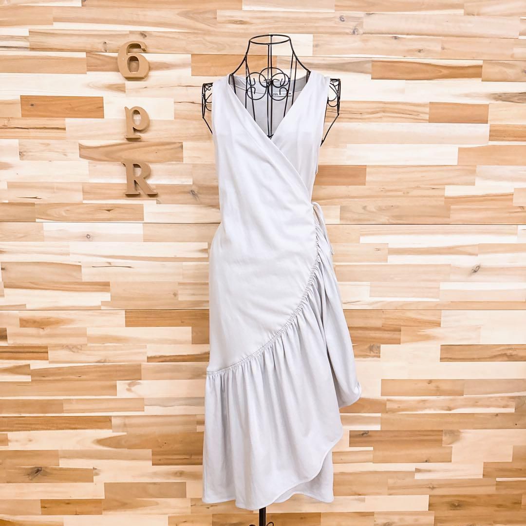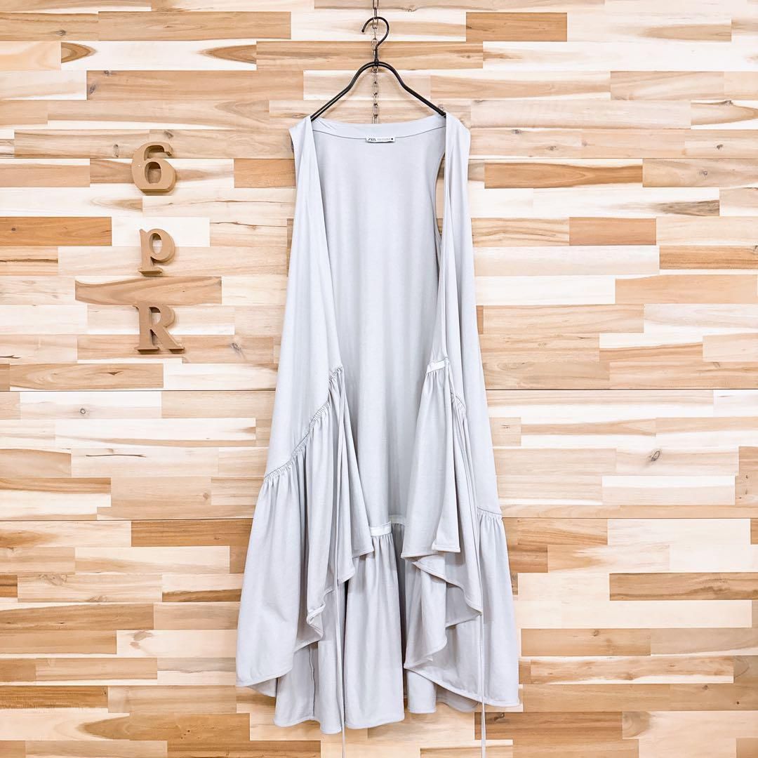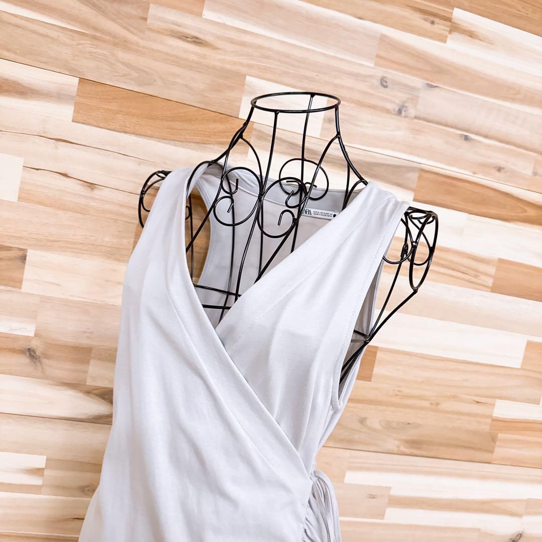 さらっとした質感の柔らか素材が肌に心地よく馴染むコットン100%×涼しげなペールグレーが洗練された大人オシャレな雰囲気に。斜めに走るラップのドレープとギャザーが、立体感をプラスしながらフェミニンなアクセント。ディテールにこだわった周囲の目を惹くデザインで、特別な日やリゾートシーンにオススメなZARAのワンピースです。既に生産も終了しており、オークションやフリマでも見ることの少ない珍しいお品です。※LGスタイラーにて除菌リフレッシュ・スチームクリーニング済みです。
