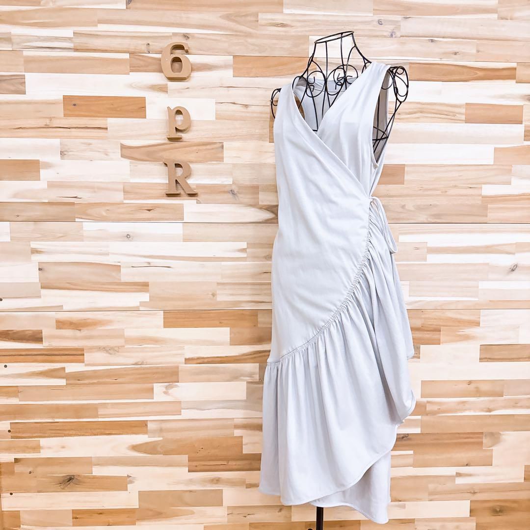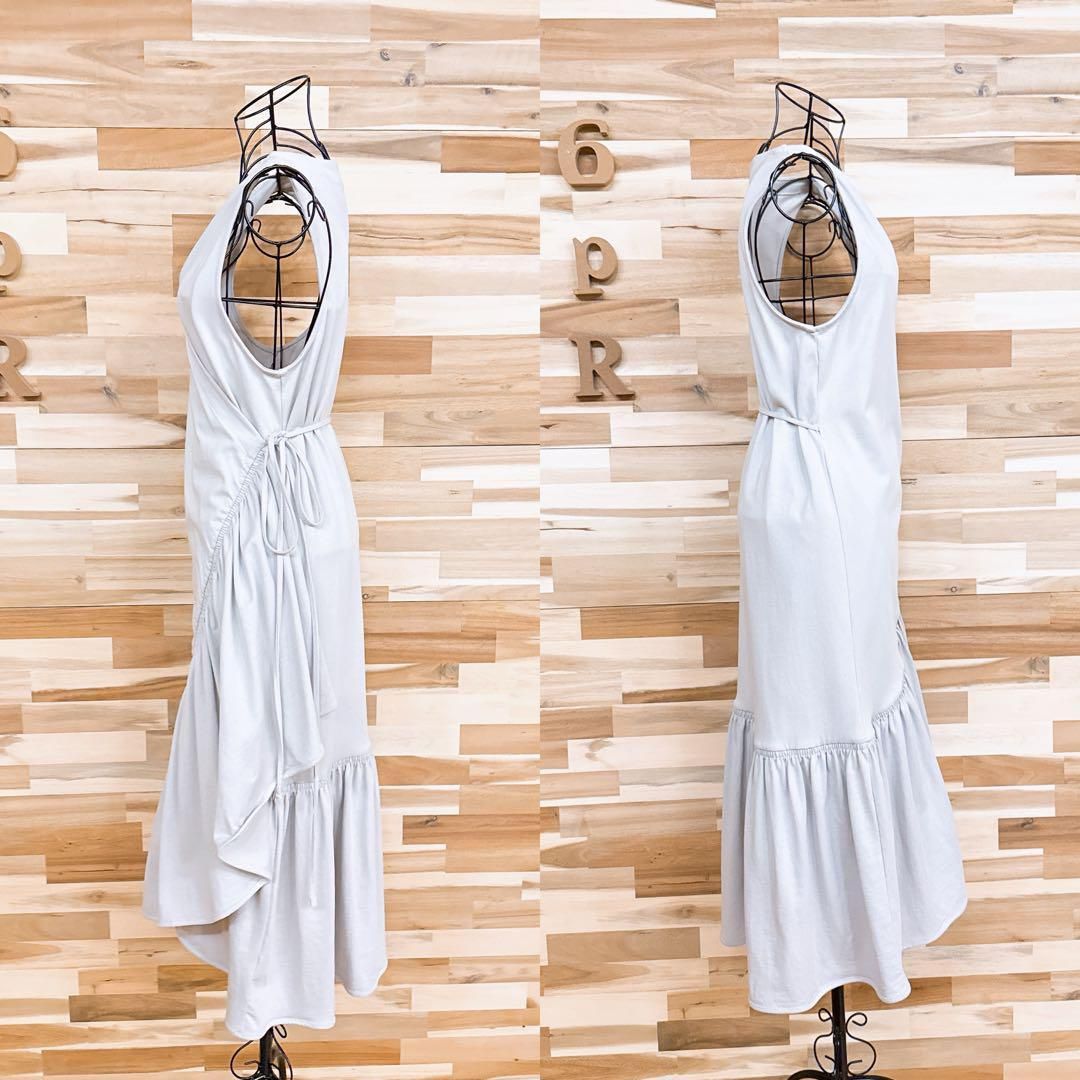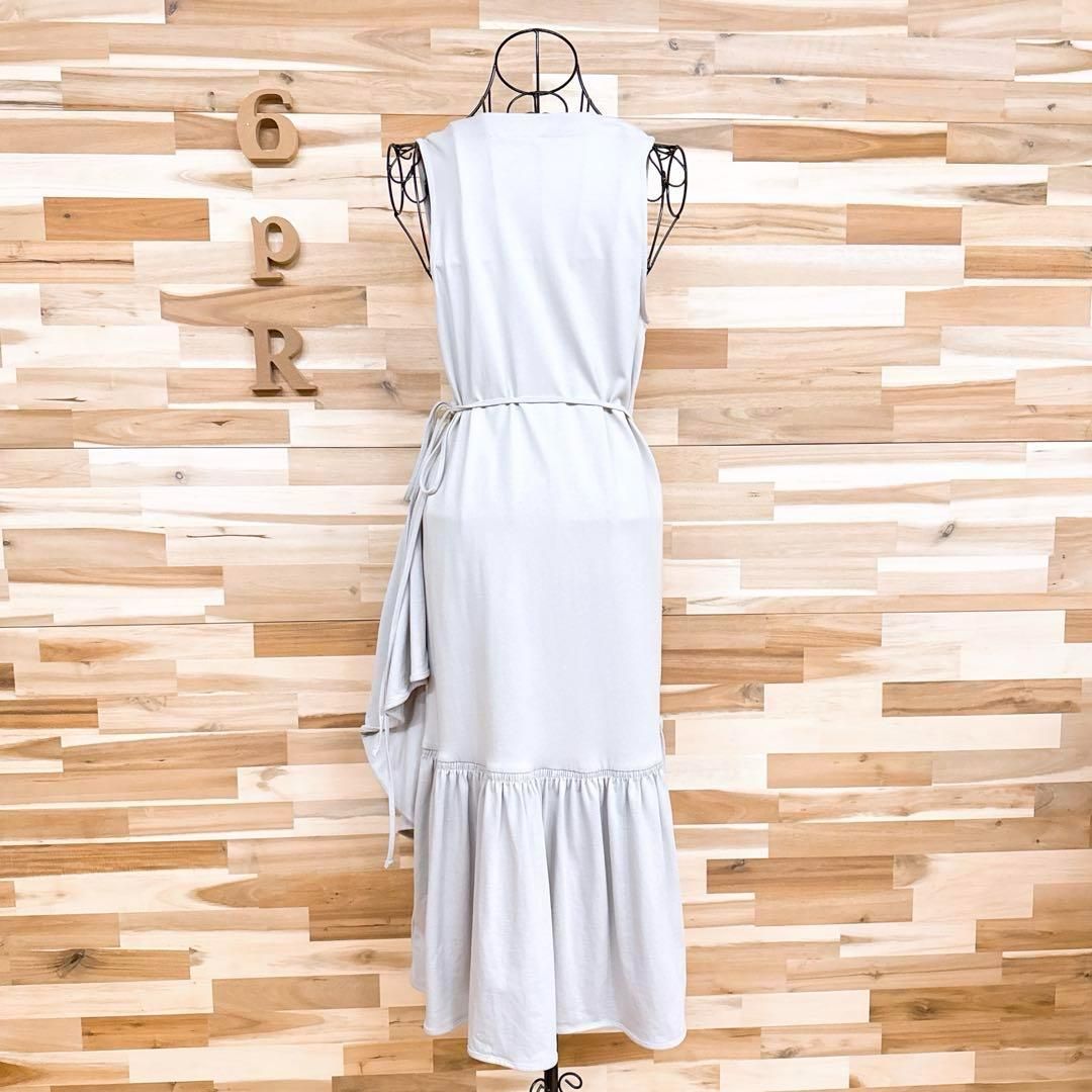 さらっとした質感の柔らか素材が肌に心地よく馴染むコットン100%×涼しげなペールグレーが洗練された大人オシャレな雰囲気に。斜めに走るラップのドレープとギャザーが、立体感をプラスしながらフェミニンなアクセント。ディテールにこだわった周囲の目を惹くデザインで、特別な日やリゾートシーンにオススメなZARAのワンピースです。既に生産も終了しており、オークションやフリマでも見ることの少ない珍しいお品です。※LGスタイラーにて除菌リフレッシュ・スチームクリーニング済みです。