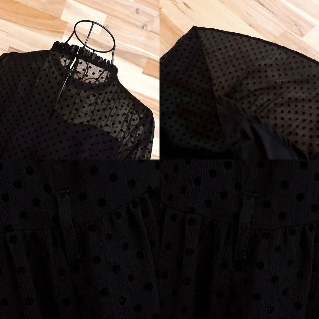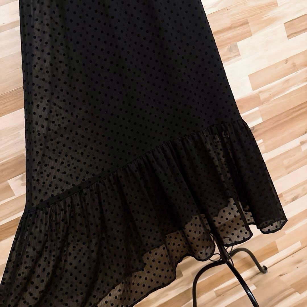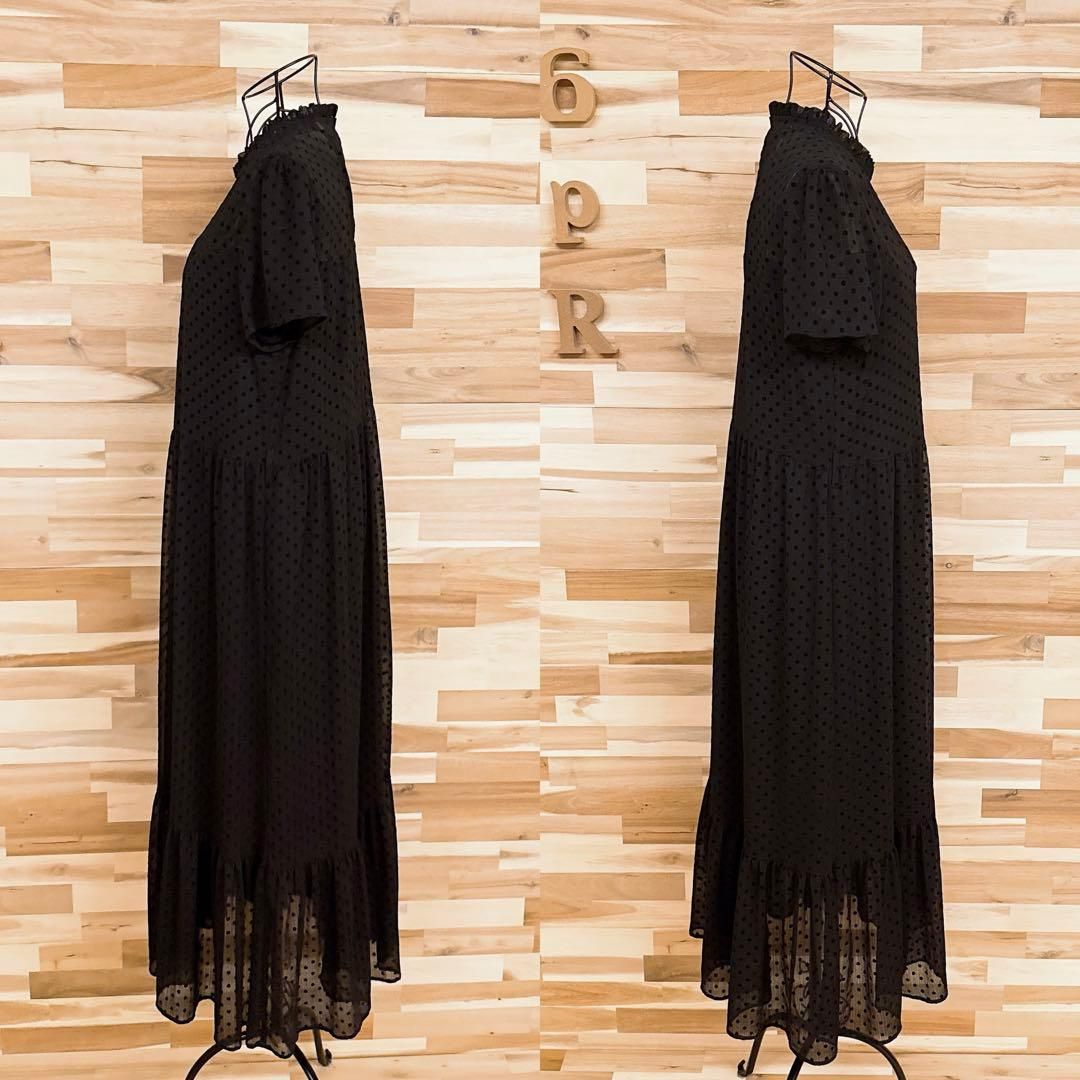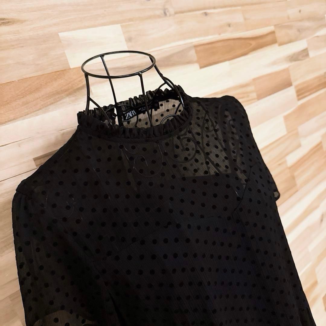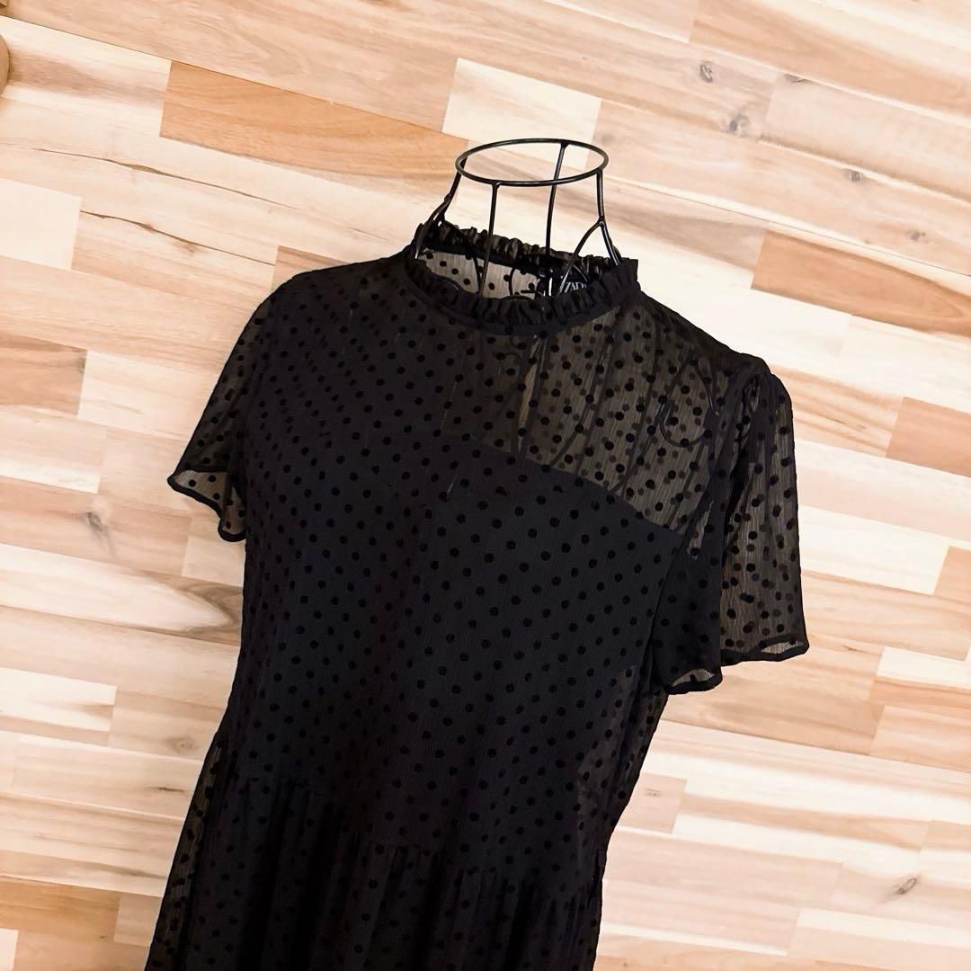 * 水玉 *透け感のあるやわらかな素材が軽く、肌にふわっと寄り添うような着心地の一着。深みのあるブラックに立体感のあるベルベットのドットが並び、甘さの中に上品さをプラス。首元のフリルと裾の切り替えが足元に動きを添え、さりげないアクセントに。ドレスライクな大人のおしゃれ着のコーデにおすすめなZARAのワンピースです。※LGスタイラーにて除菌リフレッシュ・スチームクリーニング済みです。