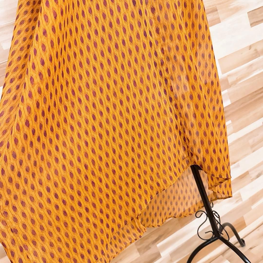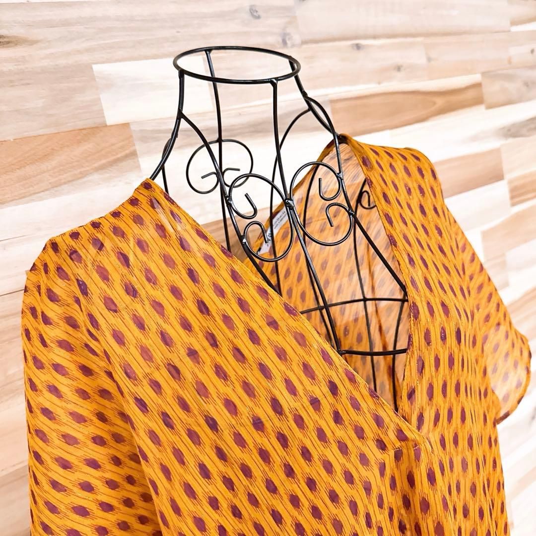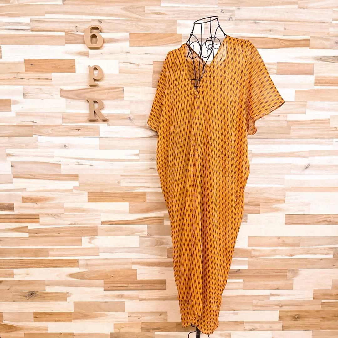 軽やかさが魅力の透け感素材に、オレンジに近いブラウンとパープル・ボルドーを重ねた印象的な色合い。繊細なラメ糸が織り込まれ、動くたびに上品なきらめきが漂う一着。前後差のあるゆったりとしたシルエットで、リラックス感と華やかさを両立。ラフなサンダル合わせも、艶やかな雰囲気を引き立ててくれるZARAのワンピースです。同じデザインを数多く作らないブランドのため、出回る数が少ないお品です。※LGスタイラーにて除菌リフレッシュ・スチームクリーニング済みです。