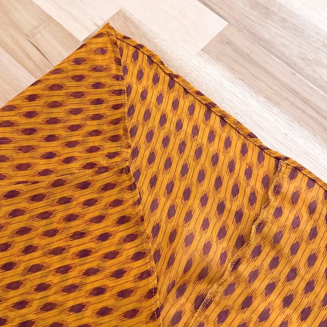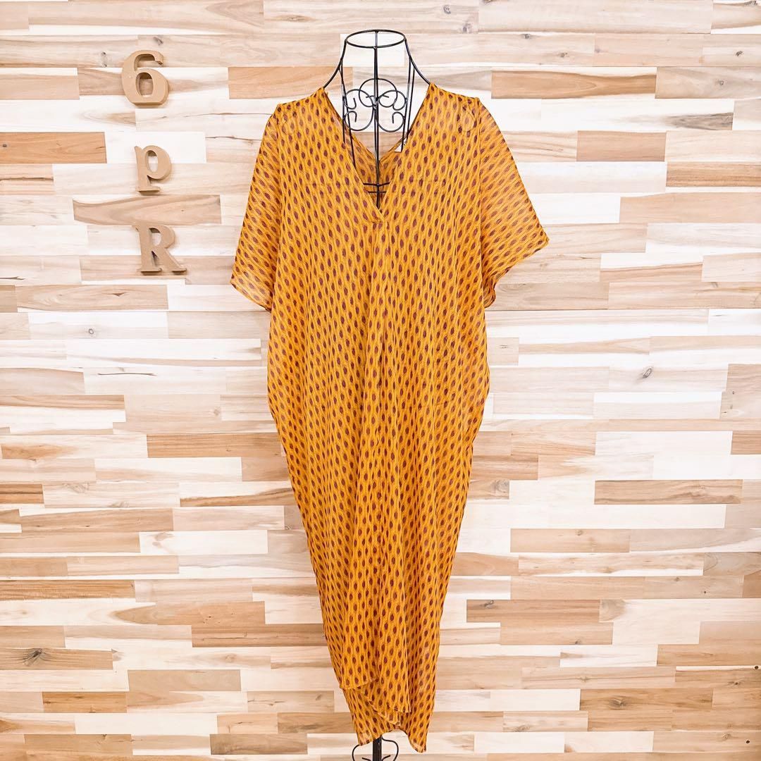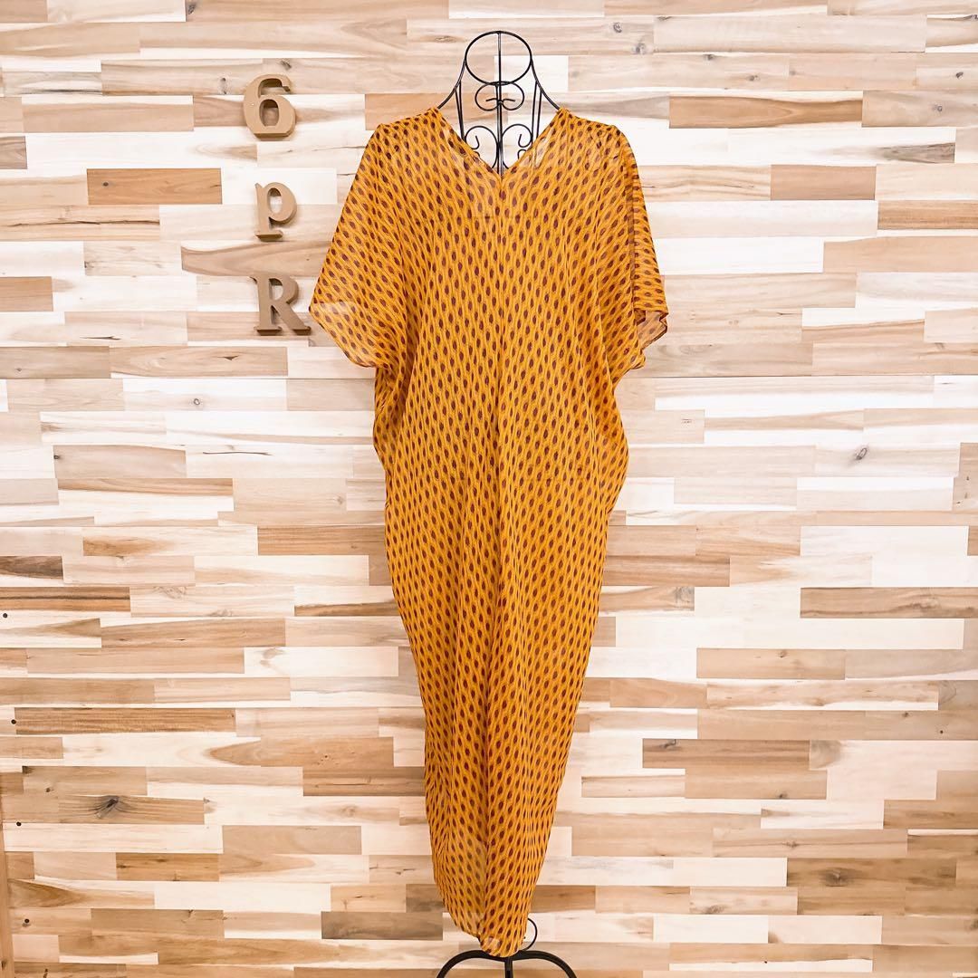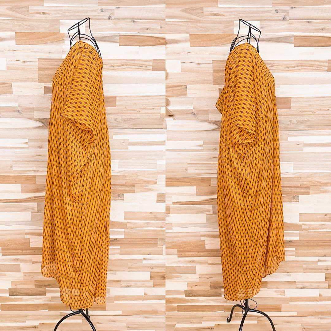 軽やかさが魅力の透け感素材に、オレンジに近いブラウンとパープル・ボルドーを重ねた印象的な色合い。繊細なラメ糸が織り込まれ、動くたびに上品なきらめきが漂う一着。前後差のあるゆったりとしたシルエットで、リラックス感と華やかさを両立。ラフなサンダル合わせも、艶やかな雰囲気を引き立ててくれるZARAのワンピースです。同じデザインを数多く作らないブランドのため、出回る数が少ないお品です。※LGスタイラーにて除菌リフレッシュ・スチームクリーニング済みです。