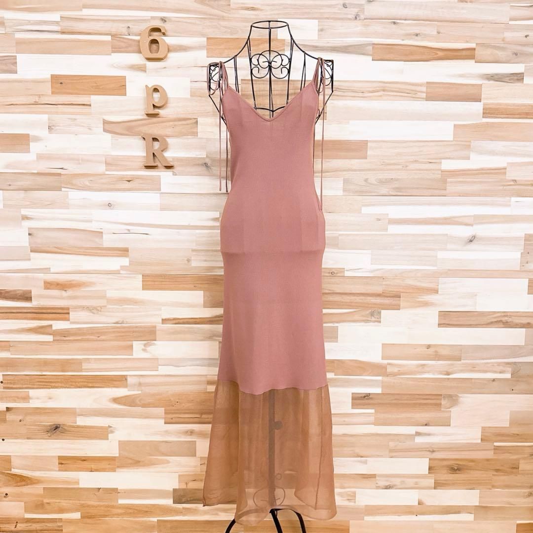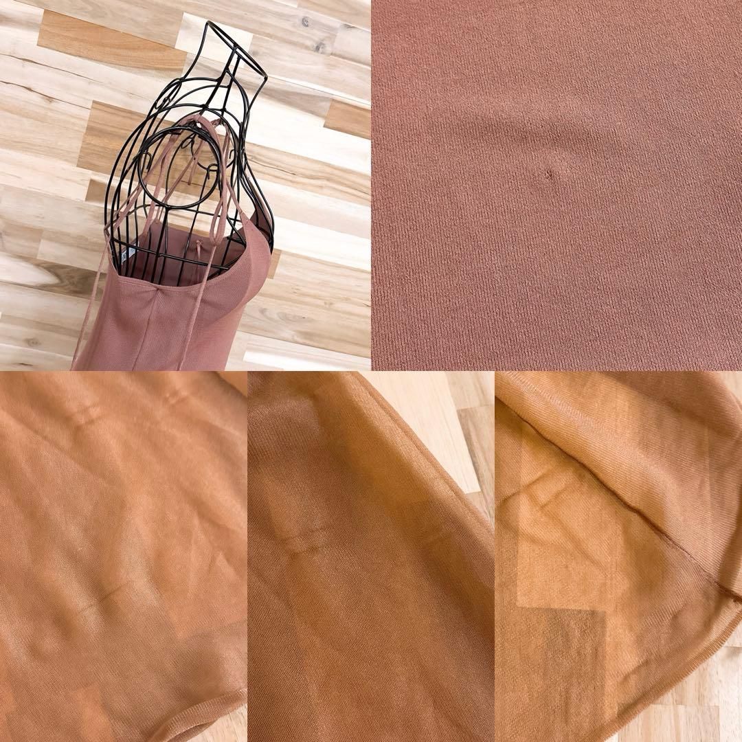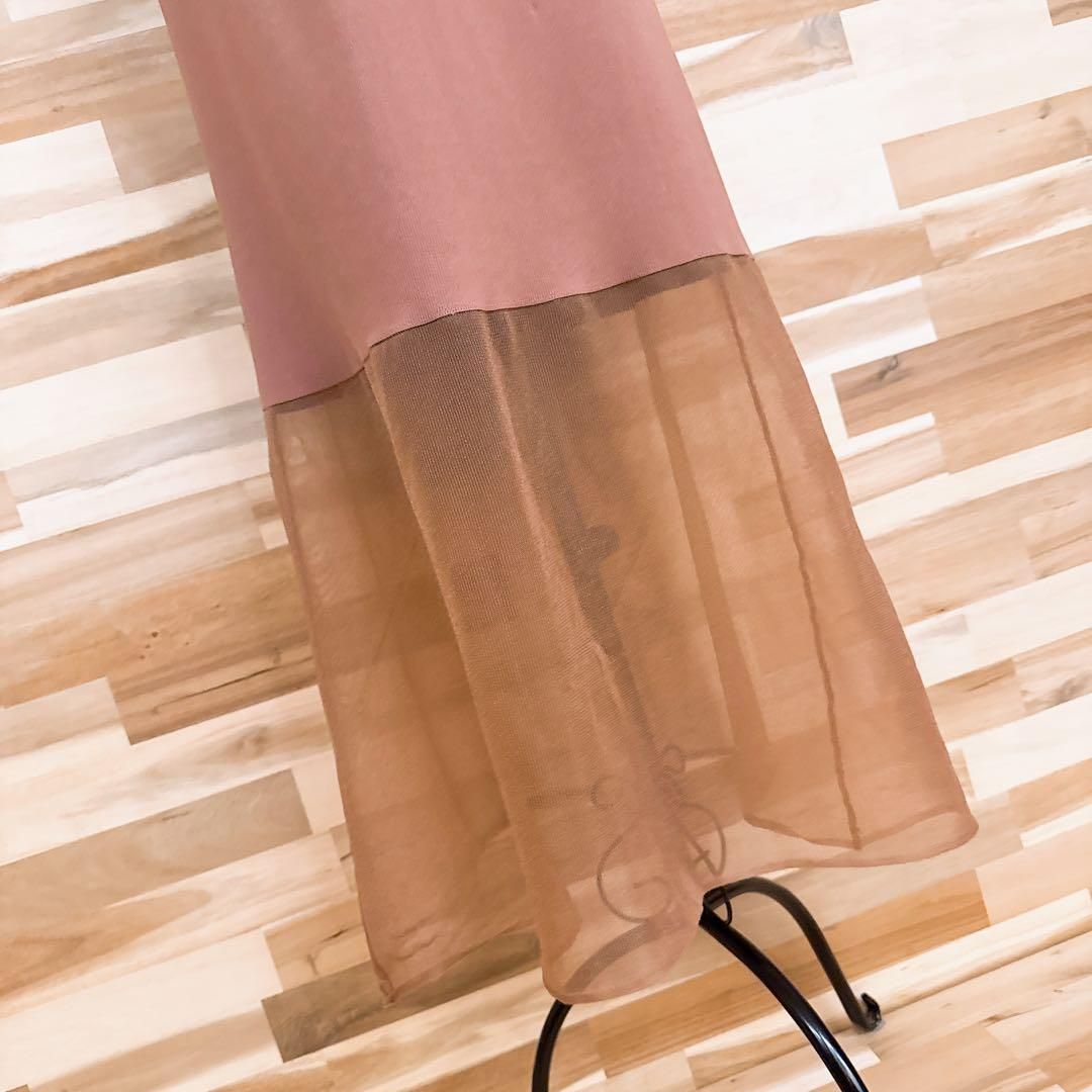 * キャミワンピ *落ち着きのあるブラウンピンクが肌をやさしく引き立て、軽やかな素材感が女性らしい雰囲気を演出。胸元のVラインと細いストラップが華奢さを際立たせ、裾に広がるシアーの切り替えが縦のラインを伸びやかに見せながら、軽やかな動きをプラスしてくれるZARAのワンピースです。※LGスタイラーにて除菌リフレッシュ・スチームクリーニング済みです。