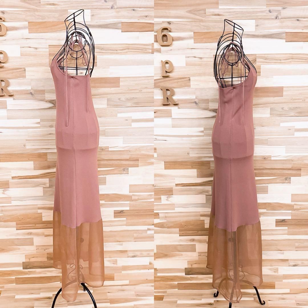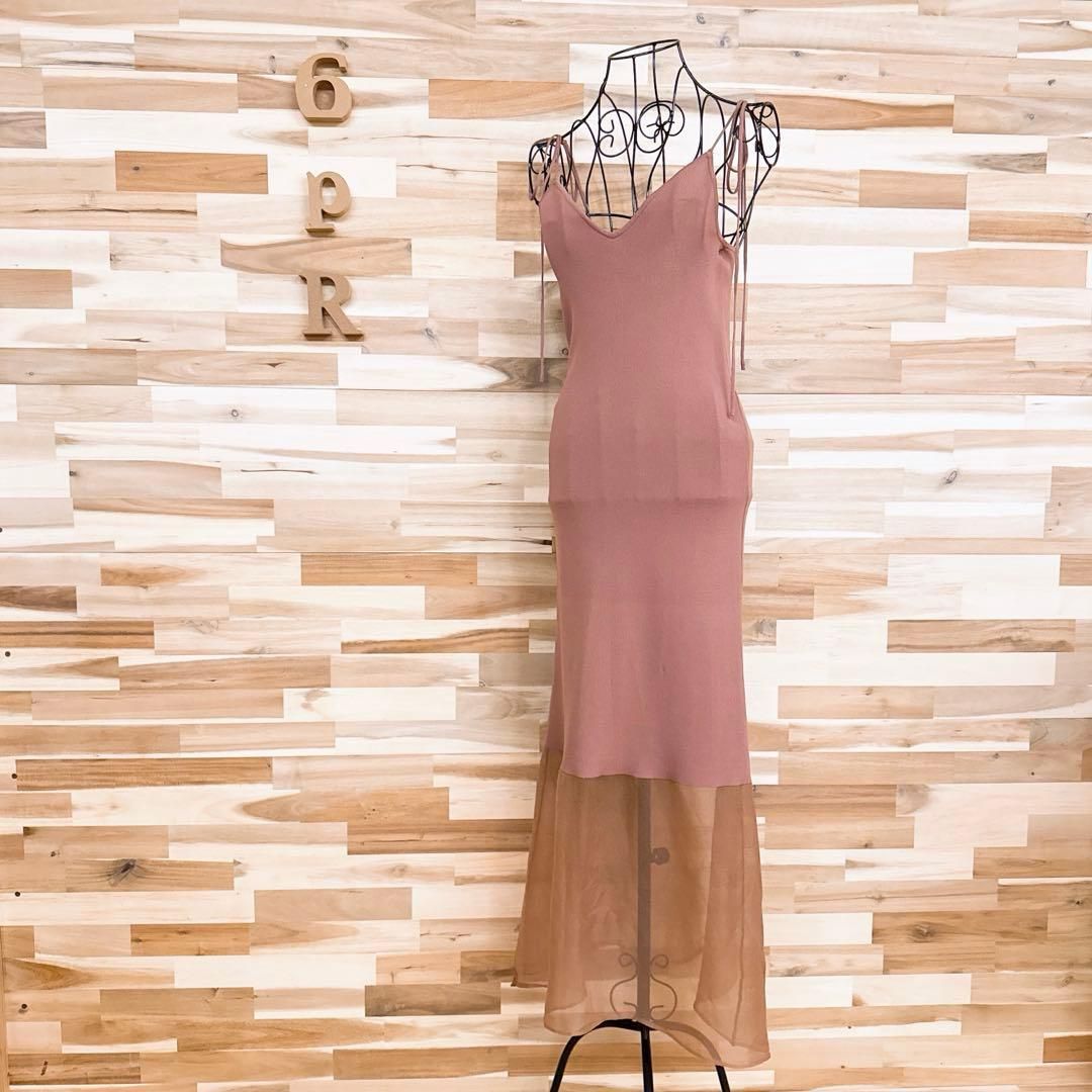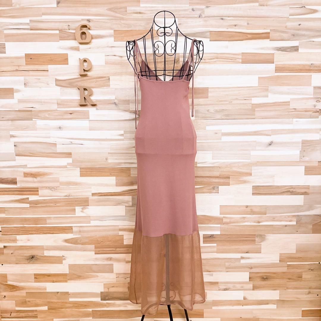 * キャミワンピ *落ち着きのあるブラウンピンクが肌をやさしく引き立て、軽やかな素材感が女性らしい雰囲気を演出。胸元のVラインと細いストラップが華奢さを際立たせ、裾に広がるシアーの切り替えが縦のラインを伸びやかに見せながら、軽やかな動きをプラスしてくれるZARAのワンピースです。※LGスタイラーにて除菌リフレッシュ・スチームクリーニング済みです。