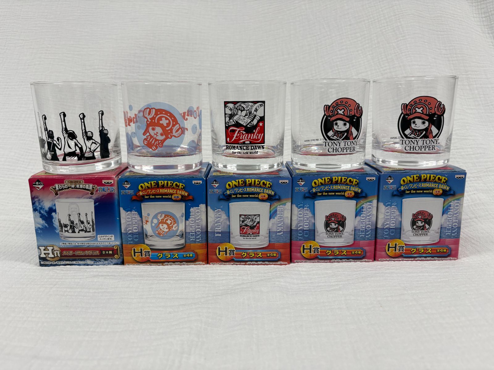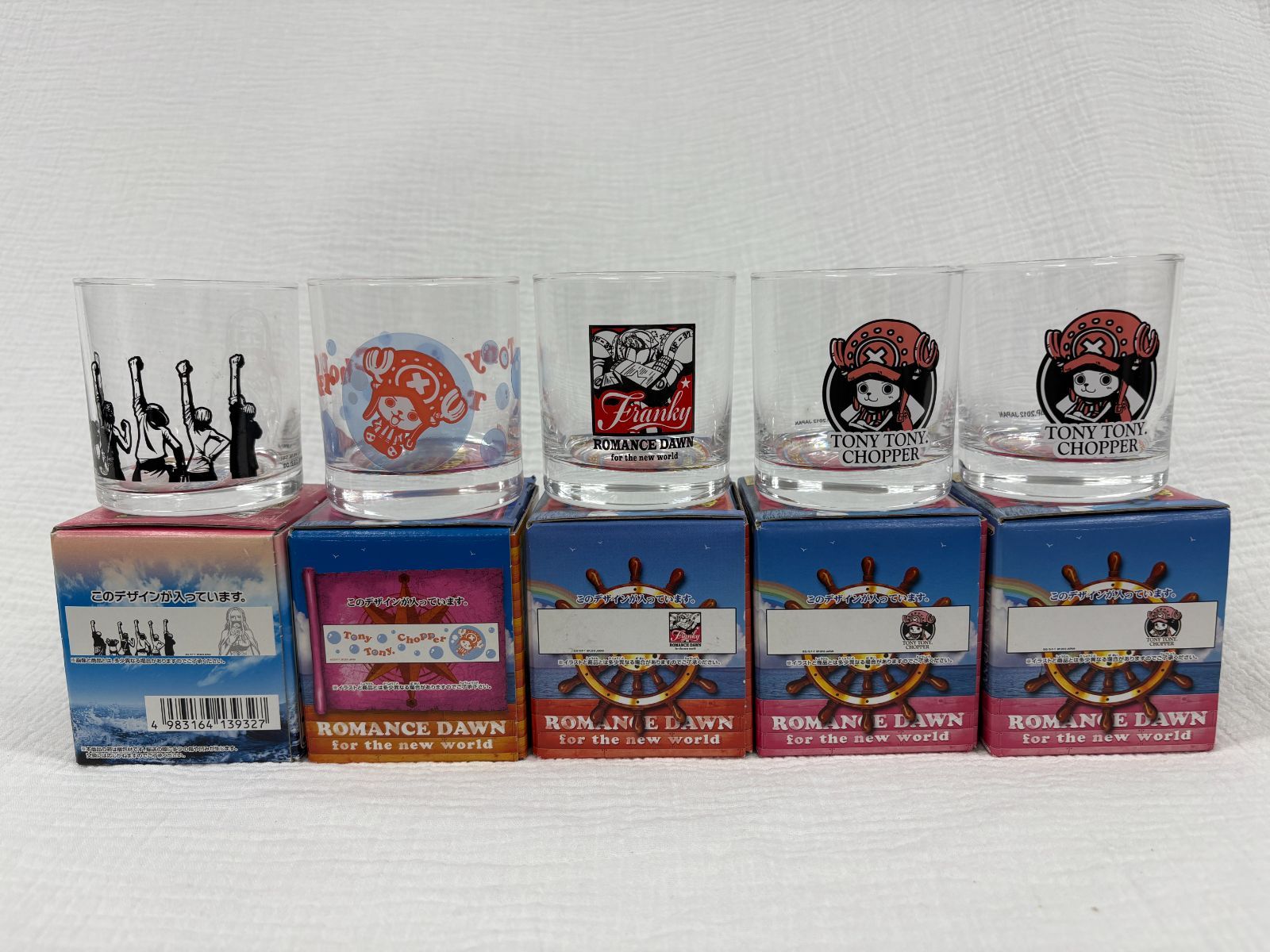 【未使用・箱付き】ワンピース 一番くじ ROMANCE DAWN H賞 グラス 5個セット(ルフィ・チョッパー・フランキー・麦わらの一味)ONE PIECE for the new world