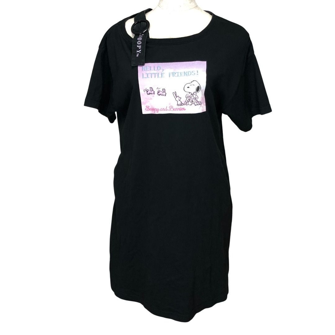 メゾピアノとピーナッツ(スヌーピー SNOOPY )がコラボレーションしたTシャツワンピースです。 フロントにはキュートなスヌーピーのイラストがあしらわれています。右肩のみにロゴ入りのベルトがついた、アシンメトリーなデザインです。ゆったりとした身幅とドロップショルダーで、こなれ感を演出できます。両側にポケットが付いています。