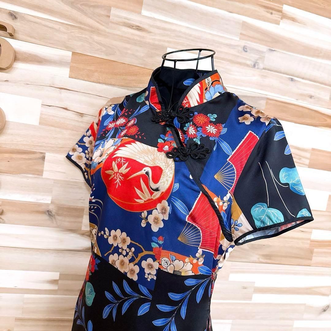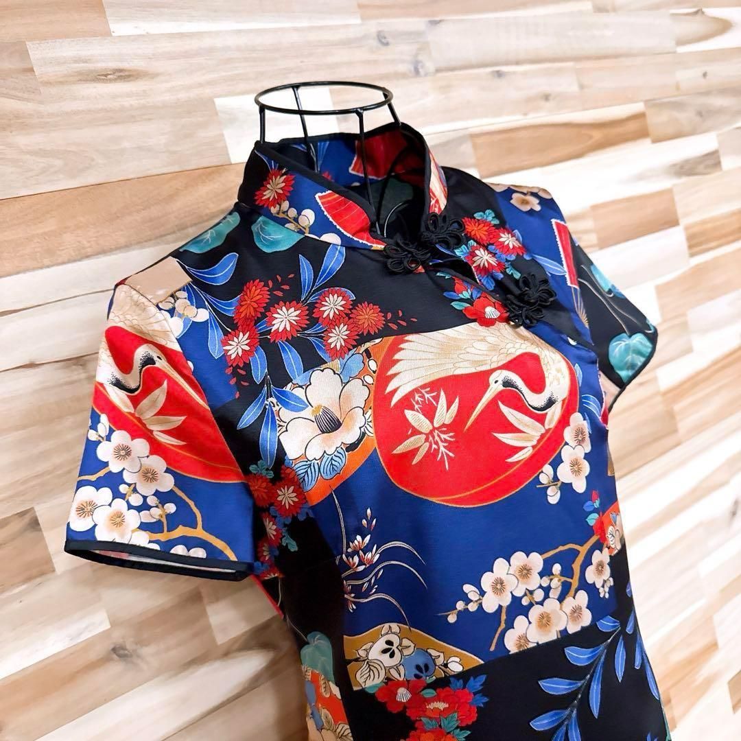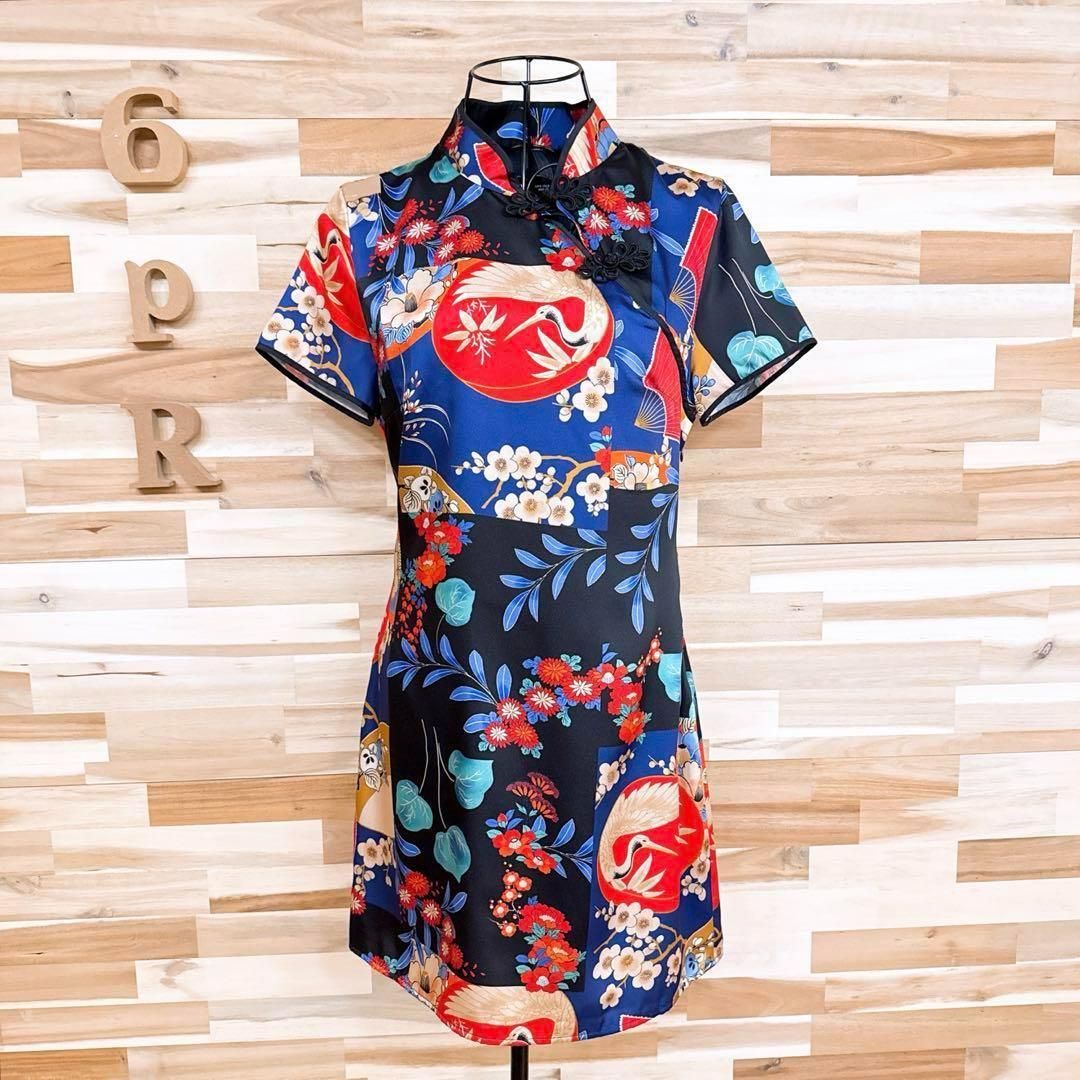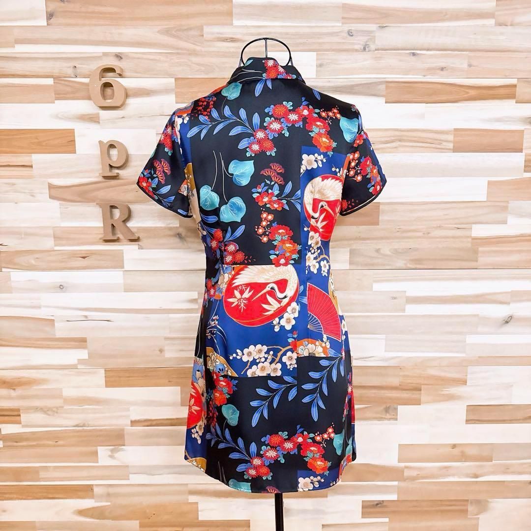 薄手でさらりとした柔らかい生地感。ツル、梅、ダリア、椿、牡丹などの和柄が色鮮やかにデザインされたとても目を惹くZARAのワンピースです。同じデザインを数多く作らないブランドのため、出回る数が少なく希少性の高いお品です。※LGスタイラーにて除菌リフレッシュ・スチームクリーニング済みです。