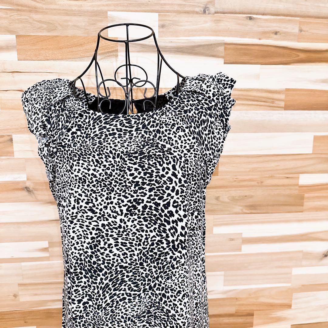 * 豹柄 *モノトーンのヒョウ柄が強さと華やかさを引き立て、涼しげなノースリーブデザインがすっきりとした印象を演出。ショルダーのフリルが程よい甘さを添え、タイトすぎないシルエットが自然に身体を美しく見せてくれるZARAのワンピースです。※LGスタイラーにて除菌リフレッシュ・スチームクリーニング済みです。
